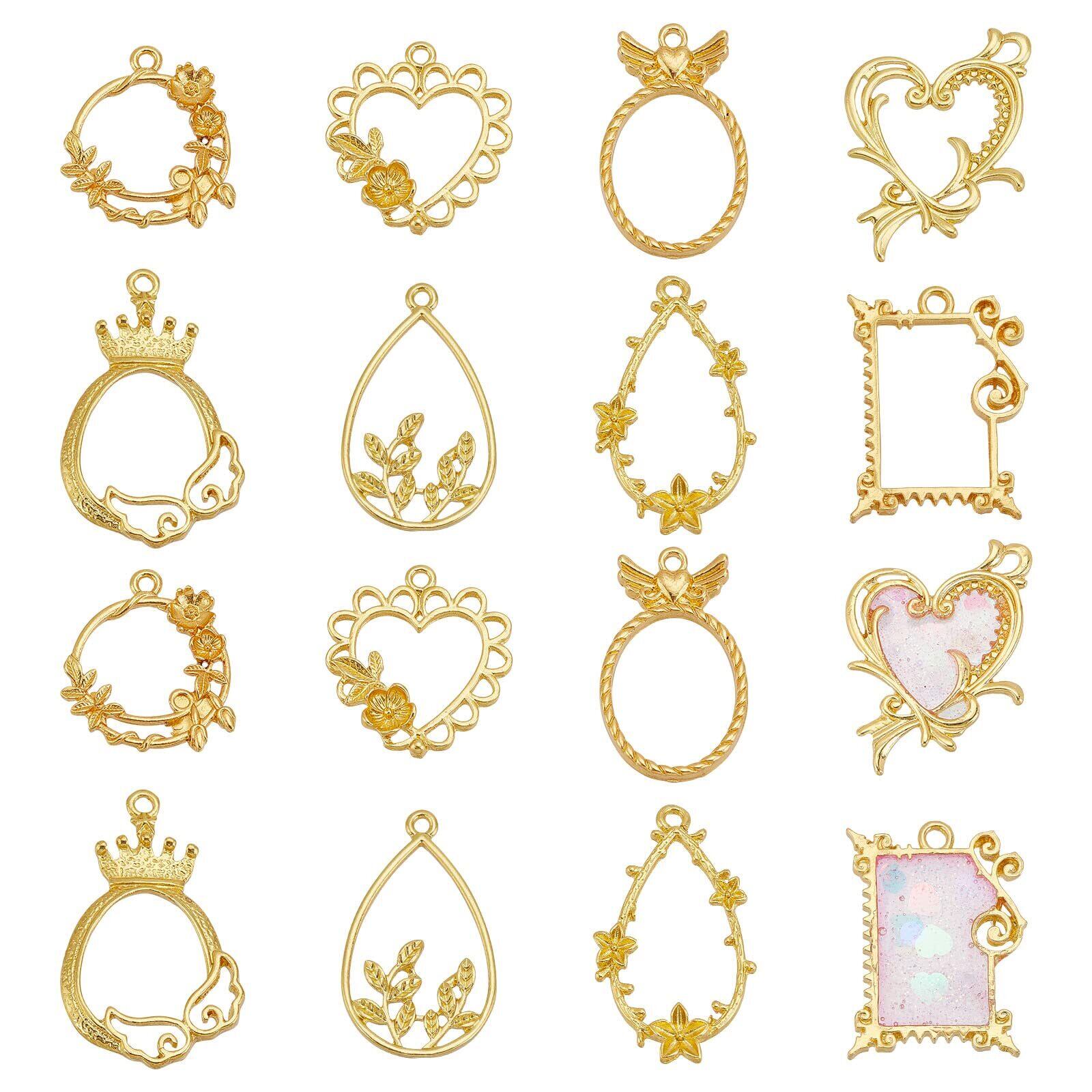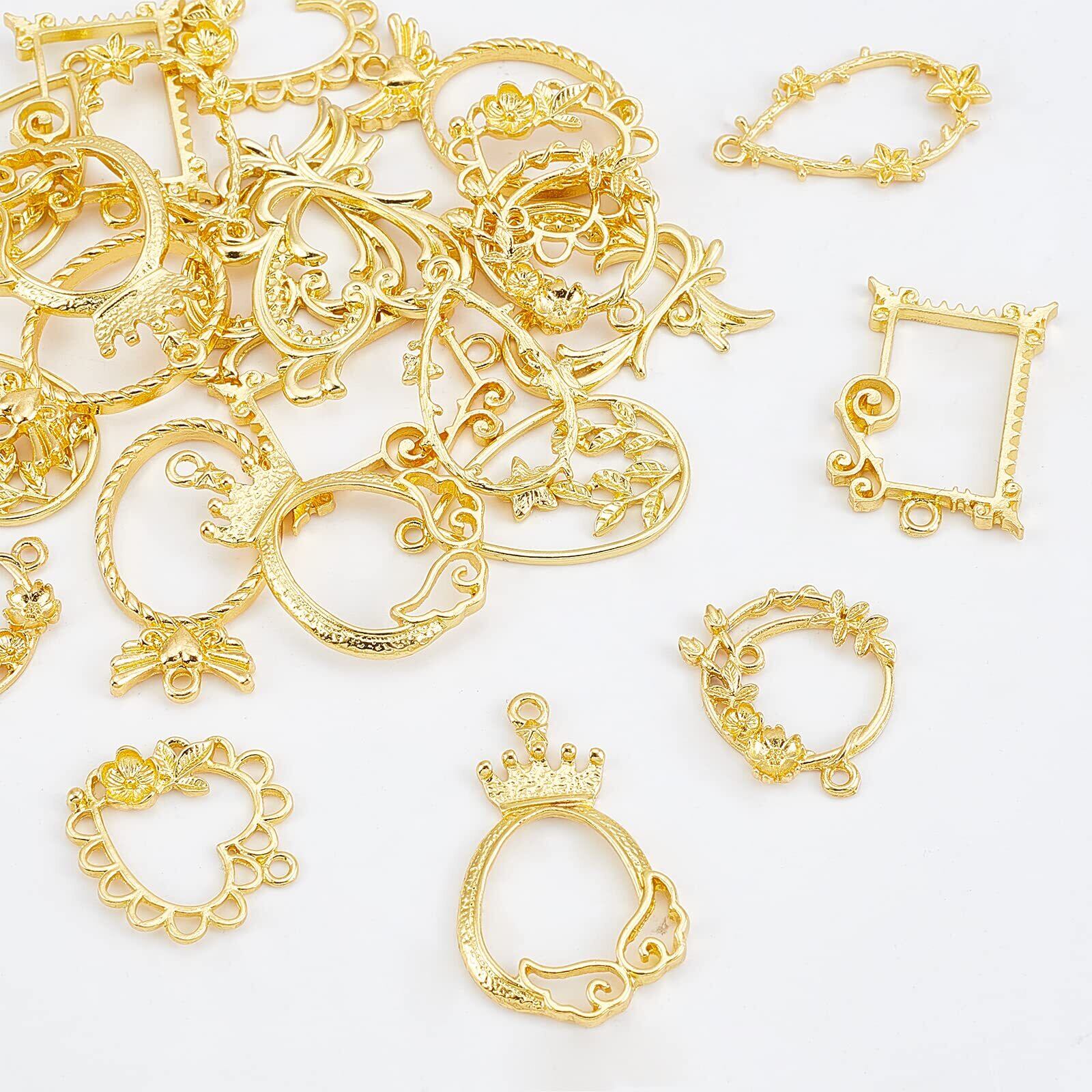 OLYCRAFT 32個 レジン枠 レジン空枠 花 ハート空枠 レジンフレーム 手作り 手芸 DIY ハンドメイド 素材 ジュエリー アクセサリーパーツ ゴールド