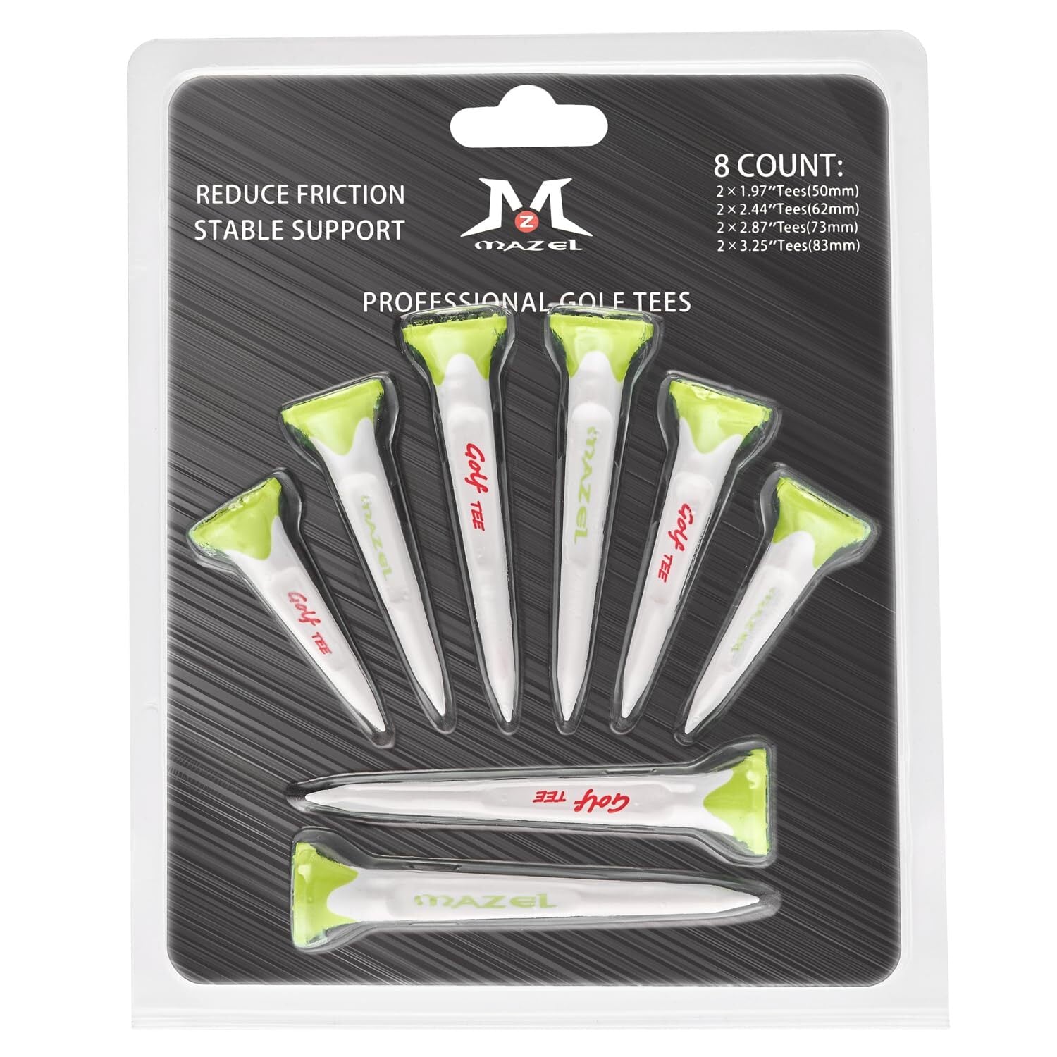 MAZEL (マゼル) プラスチック製 ゴルフティー 飛距離アップ 高耐久 折れにくい ロングティー/ショートティー ドライバー 8本入 50mm/62mm/73mm/83mm