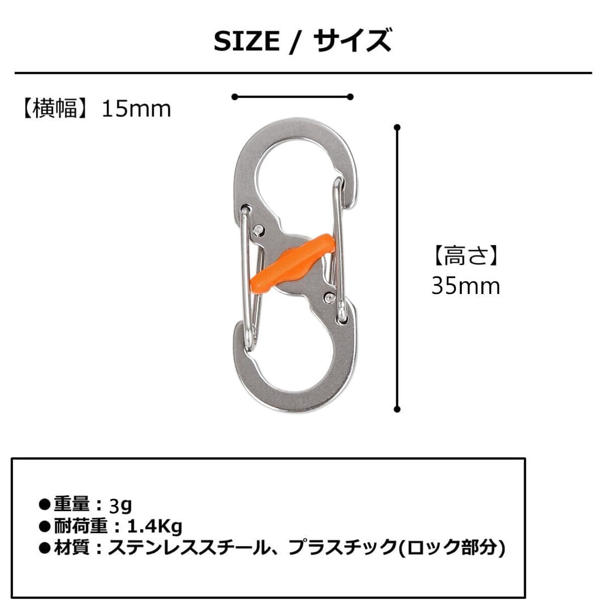 【サイズ】:H35×W15×D1.5mm 重量:3g 材質:3Cr13ステンレス 耐荷重:1.4kg ※注意点:クライミング用のカラビナとして使用することは危険ですのでお止め下さい。