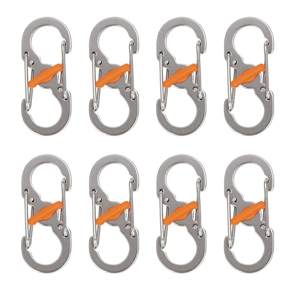 KAruim エスビナー マイクロロック S字 カラビナ 8個セット ロック機能付き キーホルダー 鍵 紛失防止 アウトドア 登山 キャンプ 釣り おしゃれ