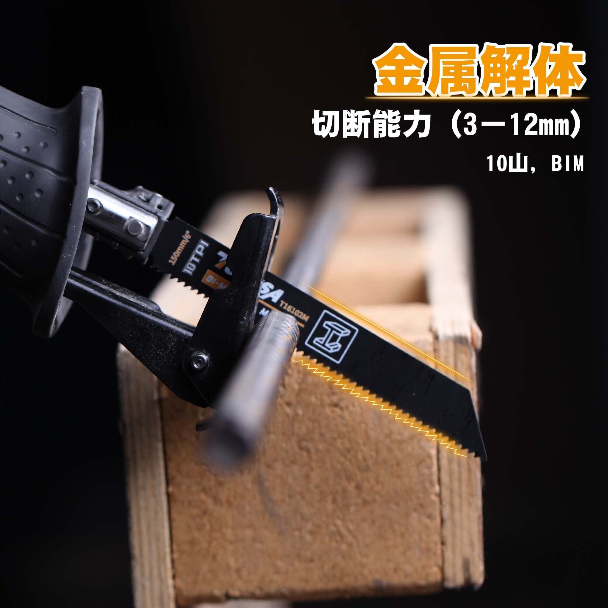 【豊富種類セット】2本*6山 バイメタル釘入りの木材切断ブレード、2本*10山 バイメタル金属解体用ブレード、2本*18山 バイメタル薄金属切断ブレード、 4本*6山 木工用ブレードなどの対応違いブレードを揃えて、切断効率を向上します。