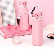 水筒カバー 保温保冷 ボトルホルダー ステンレス水筒ケース サーモス使用可能 携帯式 ショルダーストラップ付 斜めがけ 手提げ 登山 アウトドア こどもクッション 保護 おしゃれ,ピンク