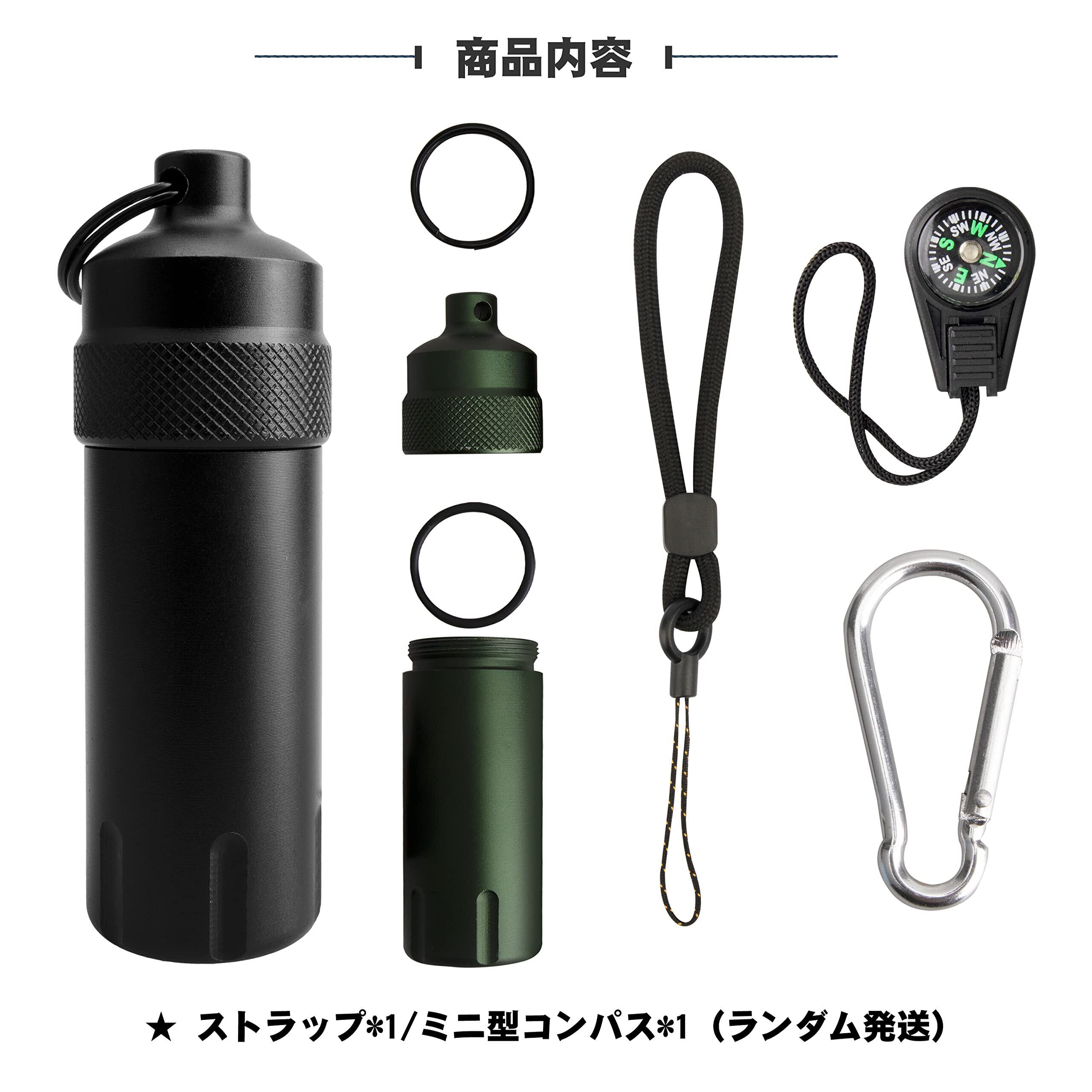 【多機能】 このシリンダー容器は防水性、密閉性が良いです。口のところはネジ型なデザインで、雨の日でも水に落ちても、しっかり内部の物を守れます。更に携帯灰皿としてだけではなく、シガレット、カギ、電池、USBなどの小物を収納できます。