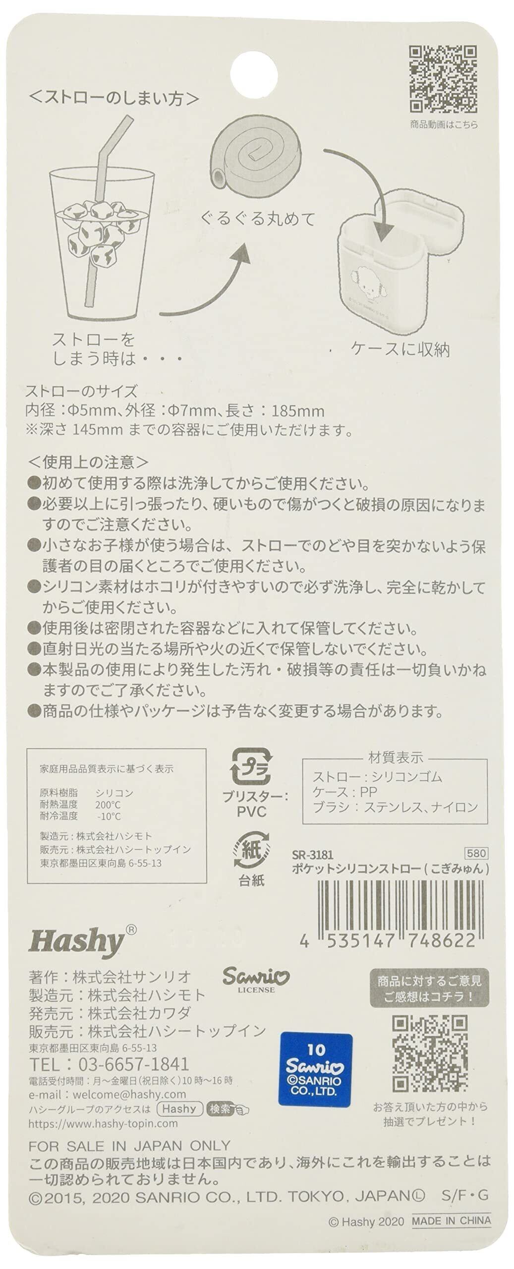 【数量限定】ハシートップイン ストロー 収納ケース付 シリコン 柔らかい マイストロー エコ 煮沸消毒可能 サンリオ こぎみゅん SR-3181