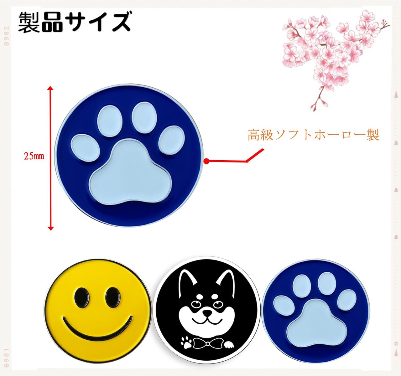 Adhere ゴルフ マーカー 金属ゴルフ ロゴボールマーク かわいい猫犬 肉球 デザイ3個入り 含まない 台座