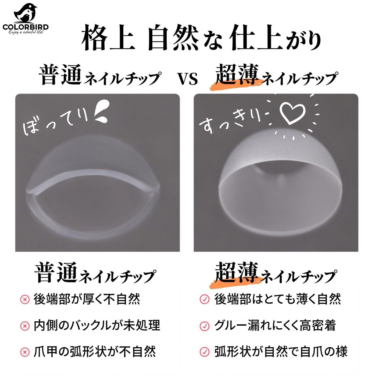 COLORBIRD ネイルチップ 超薄 ロング クリア サンディング 自然なフィット感 つけ爪 (ポイントL, 240pcs)
