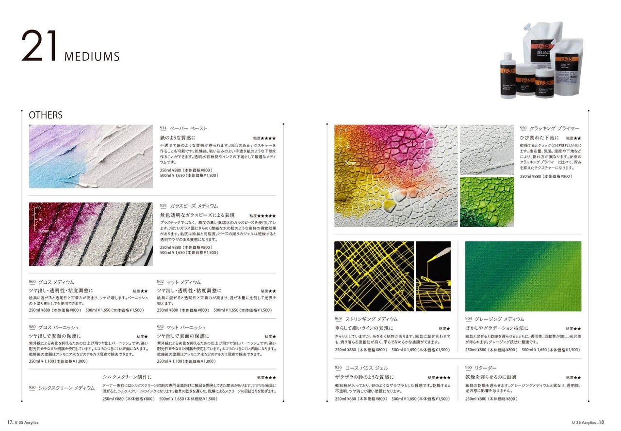 「U-35」は次世代アーティストはもちろん、プロアーティストの要望にもしっかりと応えることのできるピュアな発色と高レベルの耐光性をそなえています。