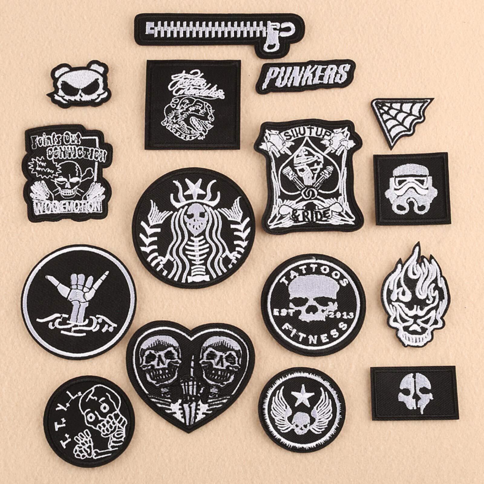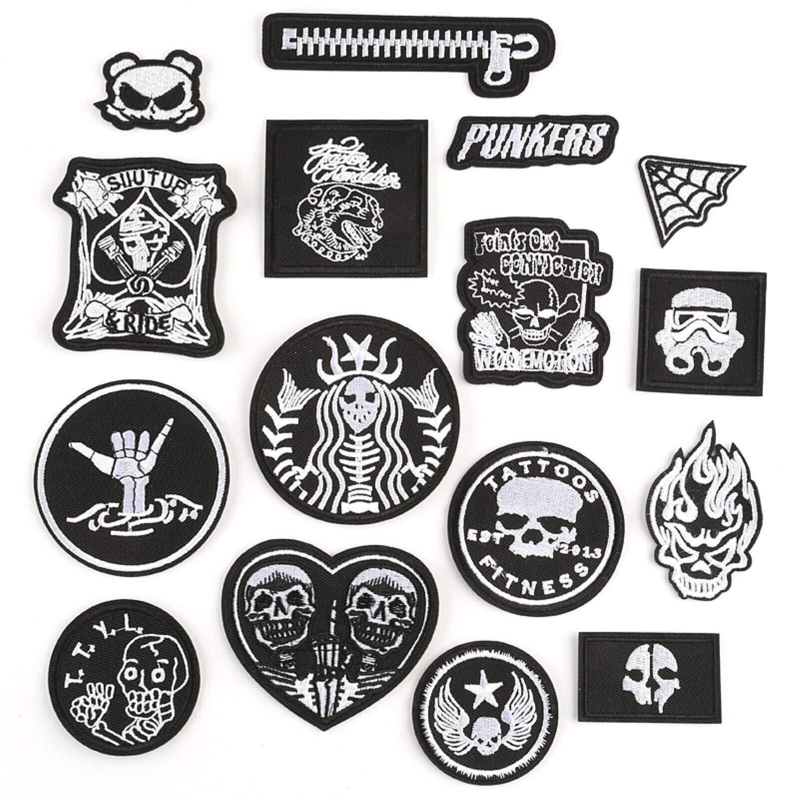 【新着商品】【Wdlife】ワッペン アップリケ アイロンワッペン刺繍 アメカジスカル(ドクロ)パンク 男子ジャケットパッチ 補修かっこいい DIY服 おしゃれ パッチ エンブレム 補修 黒色モチーフ16枚 | ニコニコSHOP