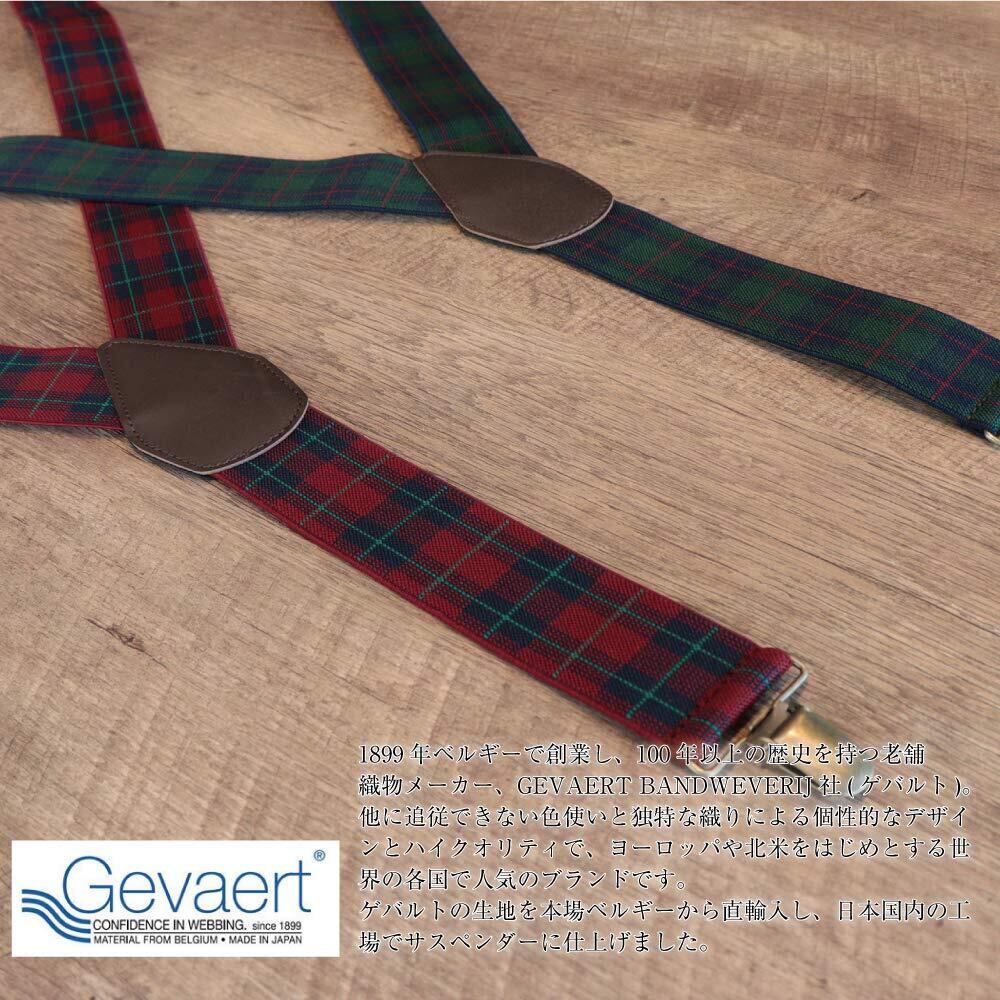 1899年創業のベルギーの老舗テキスタイルメーカー「GEVAERT BANDWEVERIJ(ゲバルト バンドウェーボン)」社製の生地を使用したサスペンダーです。日本国内の工場でベルトに仕上げました。
