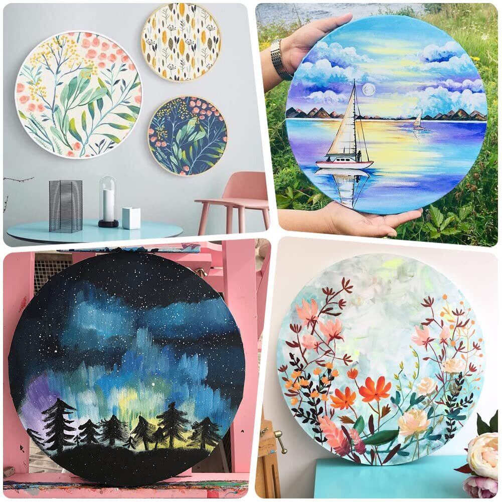 UHAPEER キャンバス 丸 画材セット【30cm、25cm、20cm】画板 キャンバス 画材 絵の具セット キャンバスボード ミニキャンバス 油絵 キャンバス 円形 綿化繊混紡 木製フレーム 絵画 油絵 水彩 アクリル 部屋飾り 張りキャンバス 3枚 (円形)