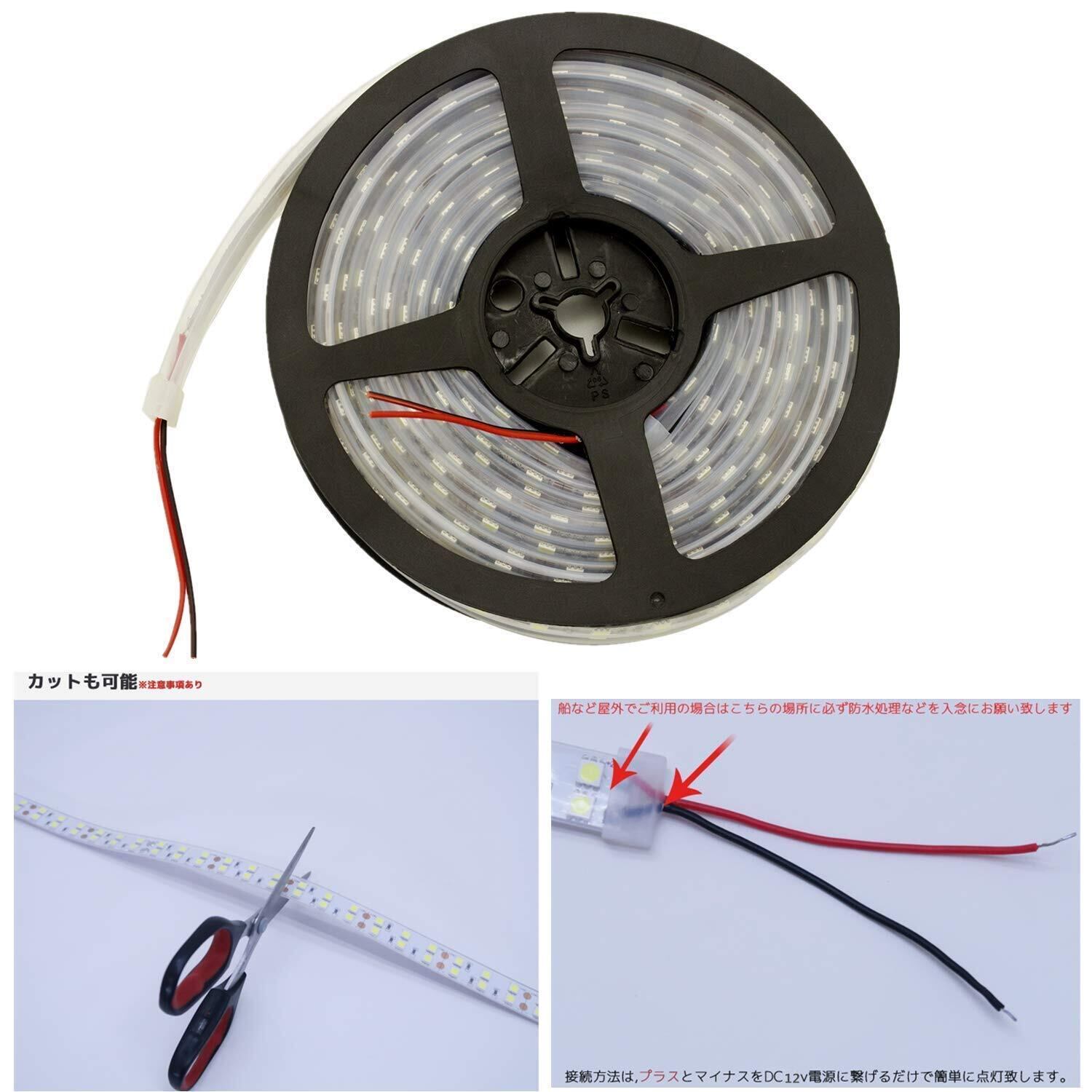LEDテープ 12V 防水 5M ホワイト SMD2835 3528 1200連 二列式 高輝度 白ベース 船舶照明 屋外照明 led間接照明 カバー付 作業灯 トラック 正面発光 (ホワイト)