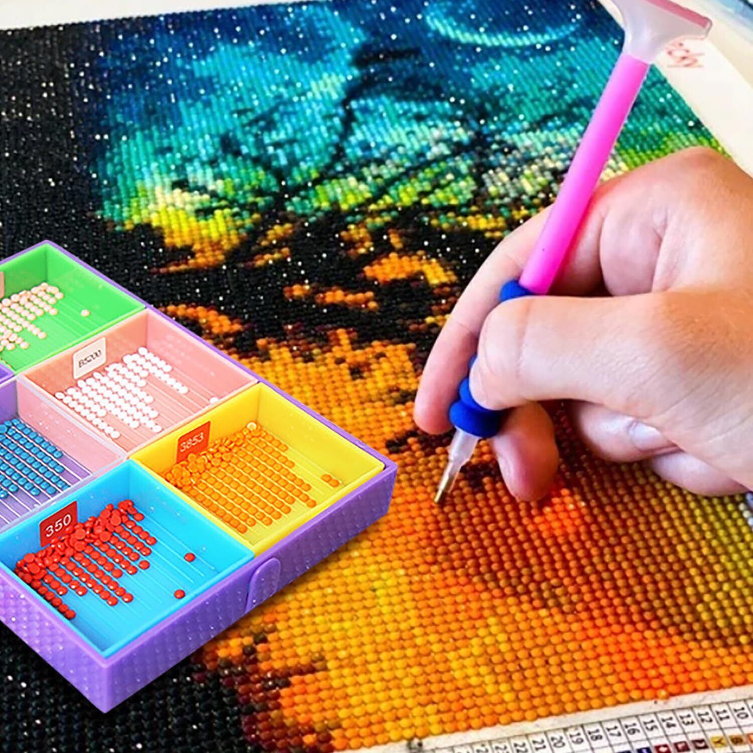 【効果的な組織と分類】6つの小さなトレイは6色で構成されており、仕分け作業に効果的に使用できます。ダイヤモンドペインターのサイズや人数に合わせて、6つの小型トレイを用意している。