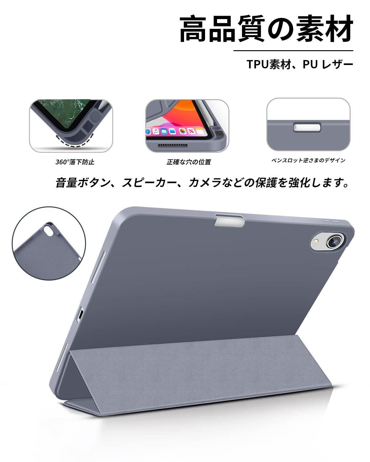 【2022最新】Aoub iPad Air 11 インチ ケース M3/M2 2025/2024 iPad Air 第5/4世代 カバー 2022/2020年 10.9インチ Pencil Proペン収納 Apple Pencil2 ワイヤレス充電対応 オートスリープ/ウェイク機能対応 ソフト TPU 薄型 軽量 耐衝撃 三つ折りスタンド(ブルーグレー) | ニコニコSHOP