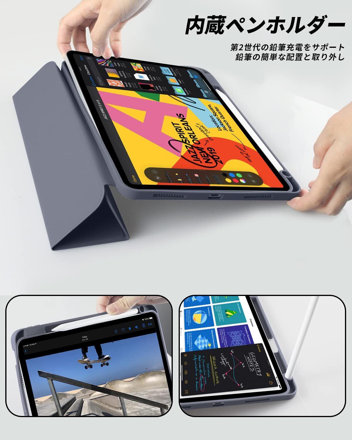 【ペンホルダー】また便利なペンホルダーがあるので、紛失しなくで安心して使えます。第二世代 Pencilワイヤレス充電対応、側面に切り口があり押すだけで簡単にペンを取り外しができる、いつでもどこでもiPadを快適に使えます。