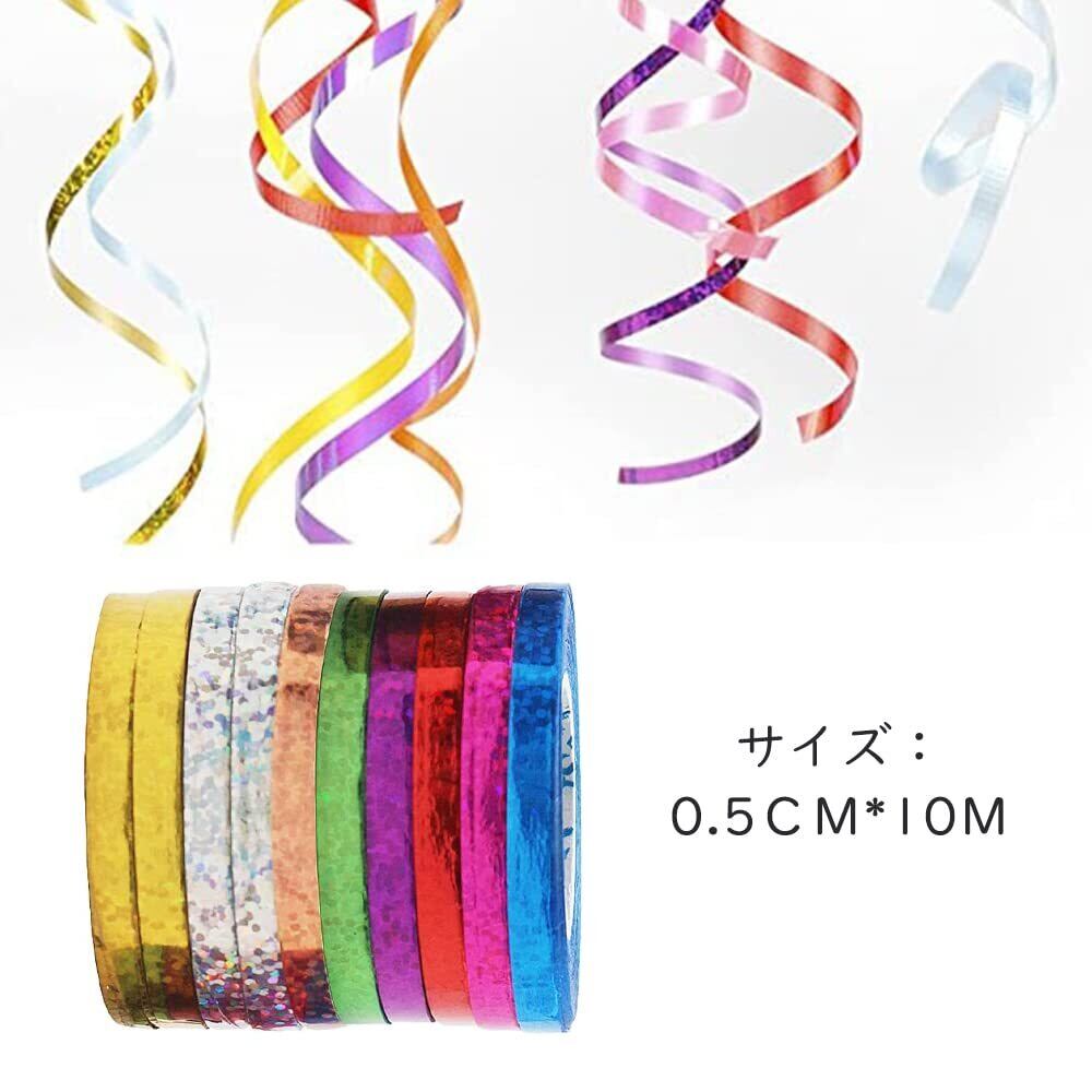 カーリングリボン 5mm*10m 8色 10個セット レーザーカラー キラキラ ピカピカ 風船用リボン 装飾用 ラッピング 誕生日 結婚式 プロポーズ 記念日 パーティー 自撮り 写真 手芸 雑貨