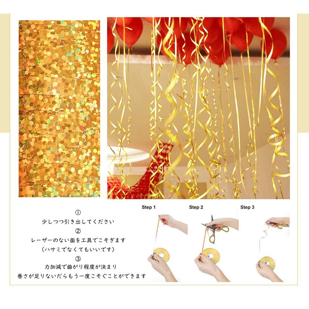 【キラキラ】:キラキラと輝くレーザーリボンは、パーティーの雰囲気を作るのベストチョイス!光に照らされると効果倍増、装飾用でも写真撮影でも最適です。