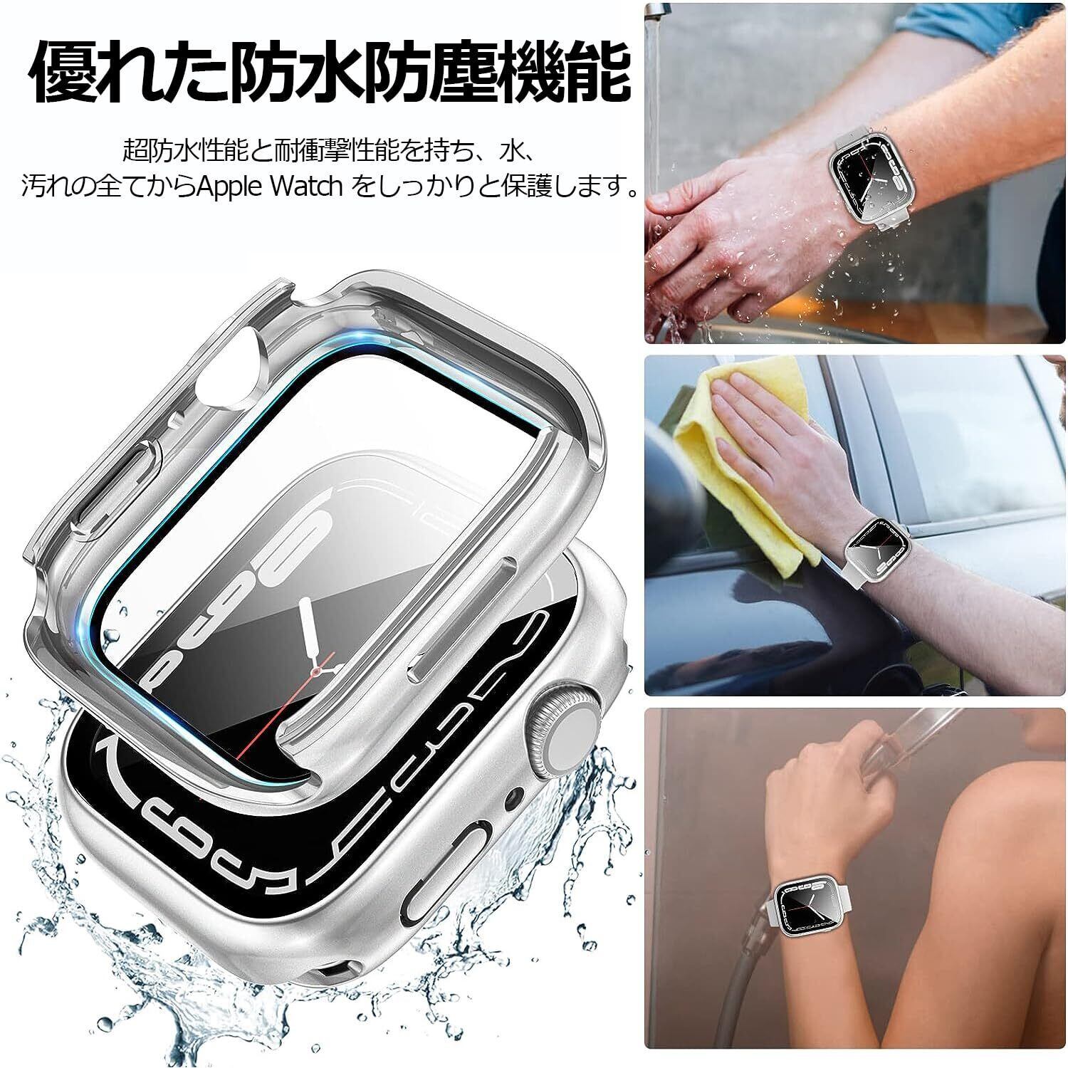 【人気商品】DIKESHGU for Apple Watch防水ケース Series6/SE/5/4 44mm/40mm アップルウォッチ保護カバー ガラスフィルム 一体型 PC素材 タッチ感良好 全面保護 装着簡単 耐衝撃 高透過率 指紋防止 傷防止(シルバー,40mm) | ニコニコSHOP