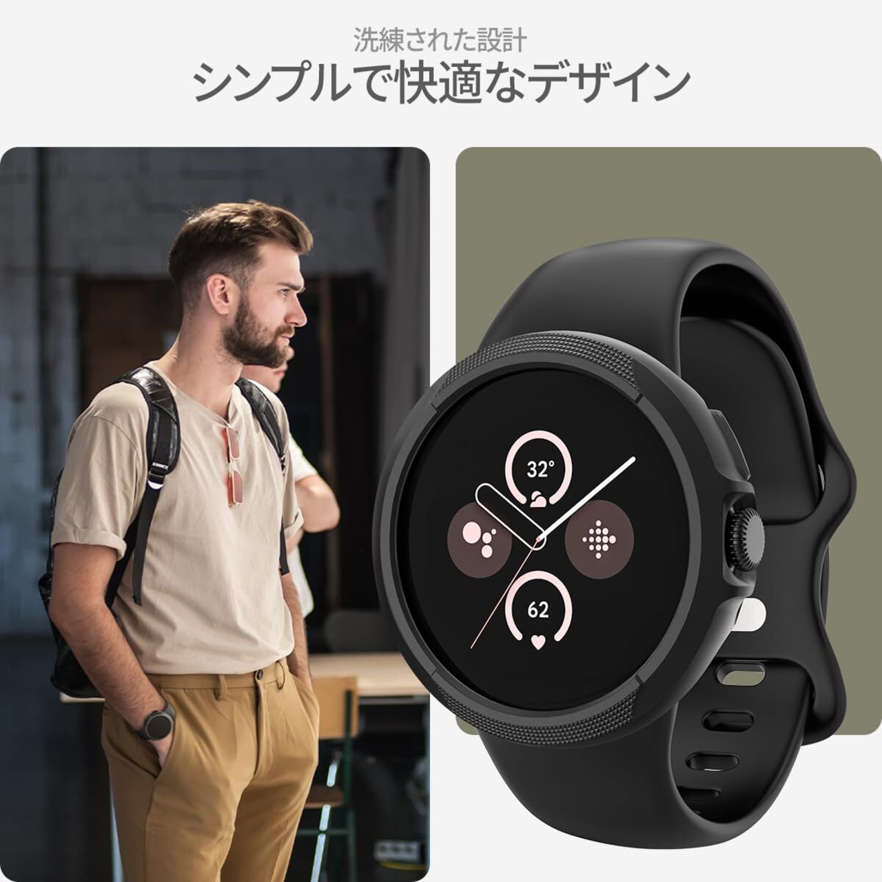 Spigen Google Pixel Watch 3 / 2 / 1 41mm ケース 落下 衝撃吸収 簡易な取り付け シンプル スリム 軽量 すり傷 防止 保護カバー リキッド・エア ACS03073 (マット・ブラック)