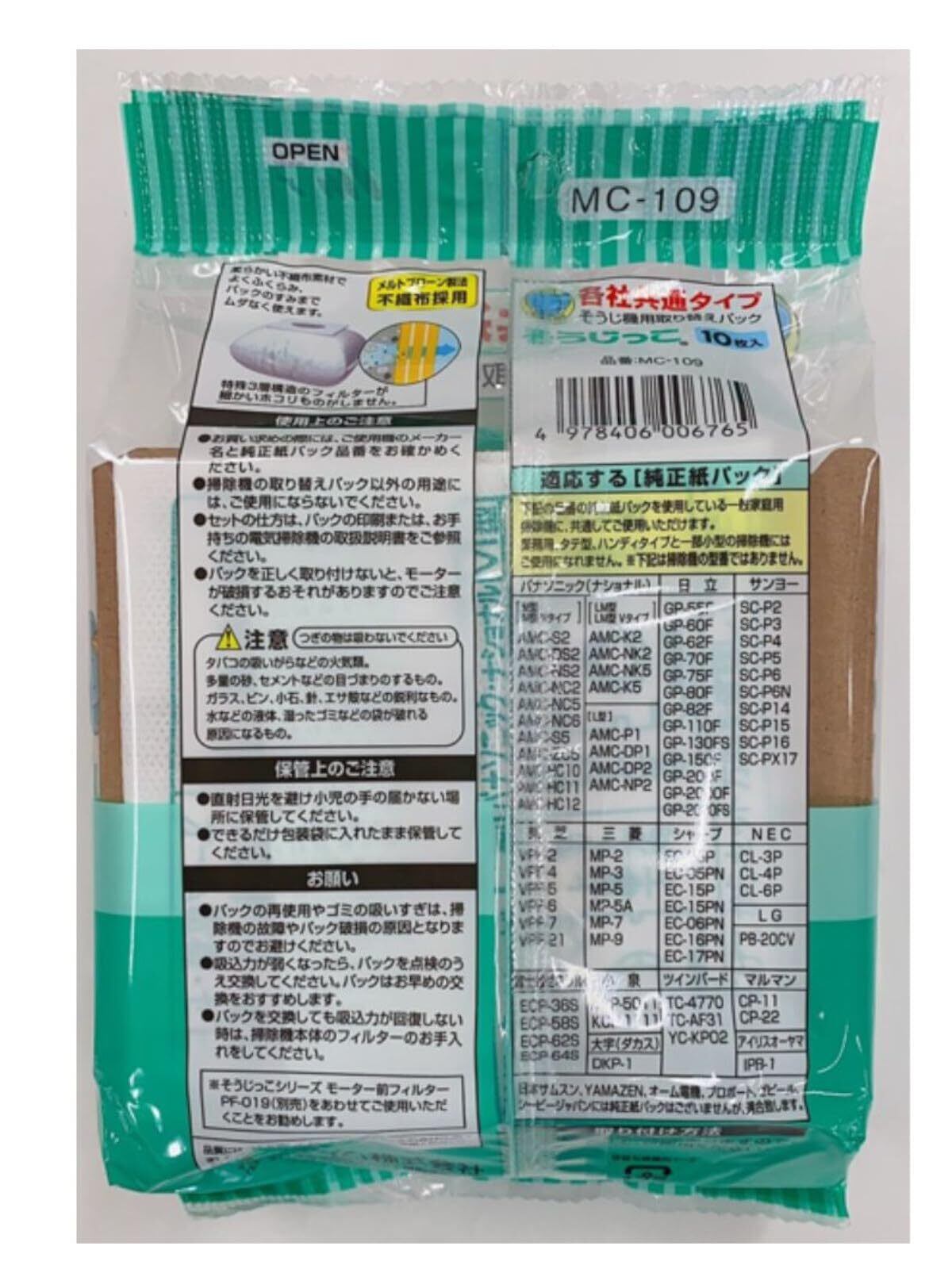 そうじっこ MC-109 ● 不織布タイプだからムダなくふくらむ 1.ムダなくふくらむからたっぷりとれる 2.特殊加工で細かいゴミがしっかり取れる 3.表示が大きいから見やすく分かりやすい