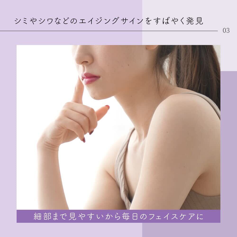 10倍拡大鏡で細部まで見やすくアイメイクやコンタクトレンズも簡単チェック!まゆ毛やお肌の細かなところまでしっかりチェックでき、細かなシミやシワなどのエイジングサインをすばやく発見!!全体のメイクバランスは普通鏡で!メイクがしやすいスタンドタイプで360°回転でラクラク!
