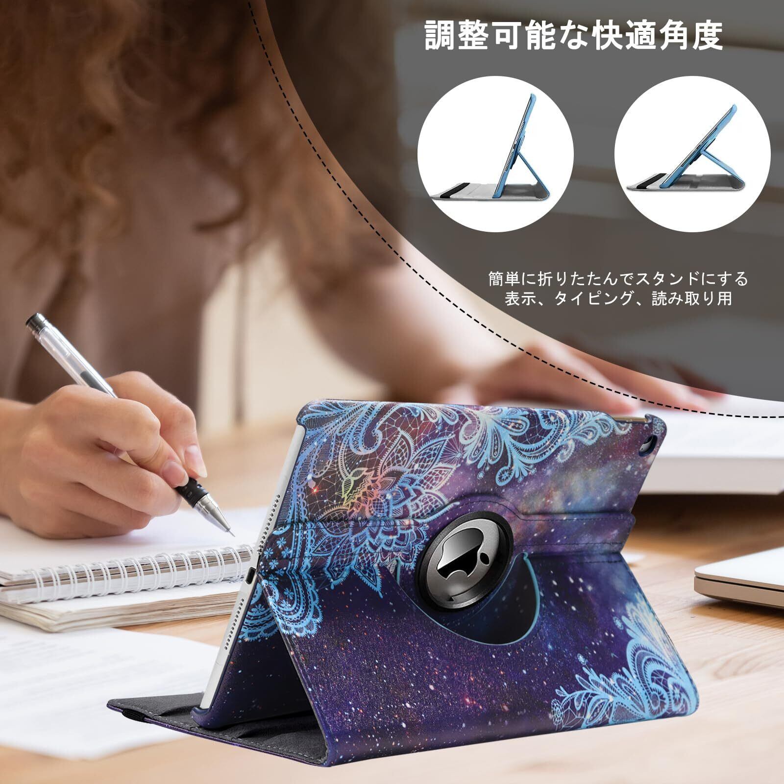 iPad 9.7 2018/2017ケース 新型(Newモデル)/iPad Air/Air2カバー iPad 9.7インチ(第6、5世代)軽量 手帳型 360度回転スタンド オートスリープ機能 3段階調節可能 固定バンド 脱落防止耐衝撃 耐久性 おしゃれデニム生地 (星空花です)