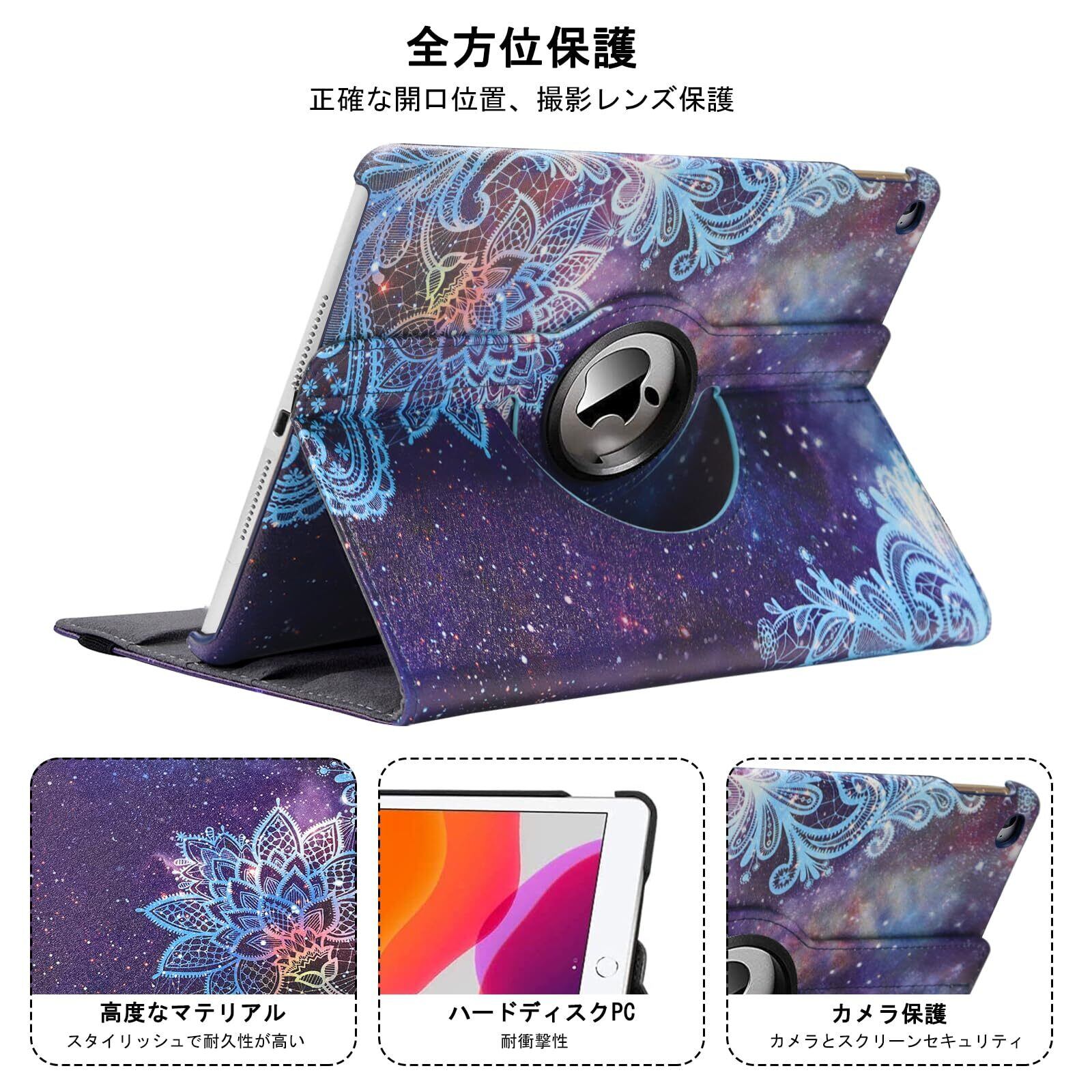 【特価商品】iPad 9.7 2018/2017ケース 新型(Newモデル)/iPad Air/Air2カバー iPad 9.7インチ(第6、5世代)軽量 手帳型 360度回転スタンド オートスリープ機能 3段階調節可能 固定バンド 脱落防止耐衝撃 耐久性 おしゃれデニム生地 (星空花です)