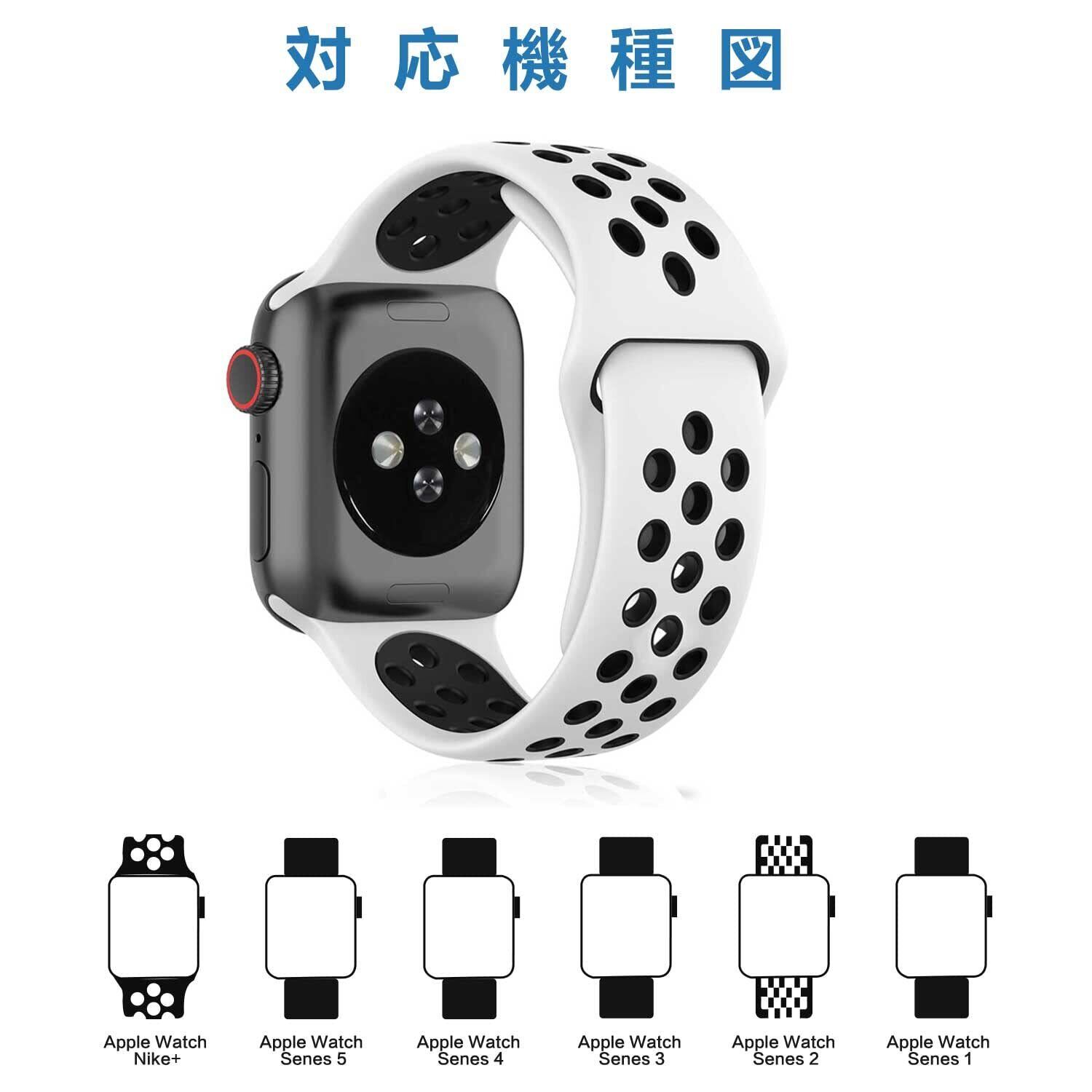 ZENGYQI コンパチブル Apple Watch バンド 38mm 40mm 41mm 42mm 44mm 45mm,ソフトシリコン 通気性 スポーツ ストラップ 交換リストバンド iWatch series SE/8/7/6/5/4/3/2/1に対応 (38mm/40mm, ピュアホワイト/黒)