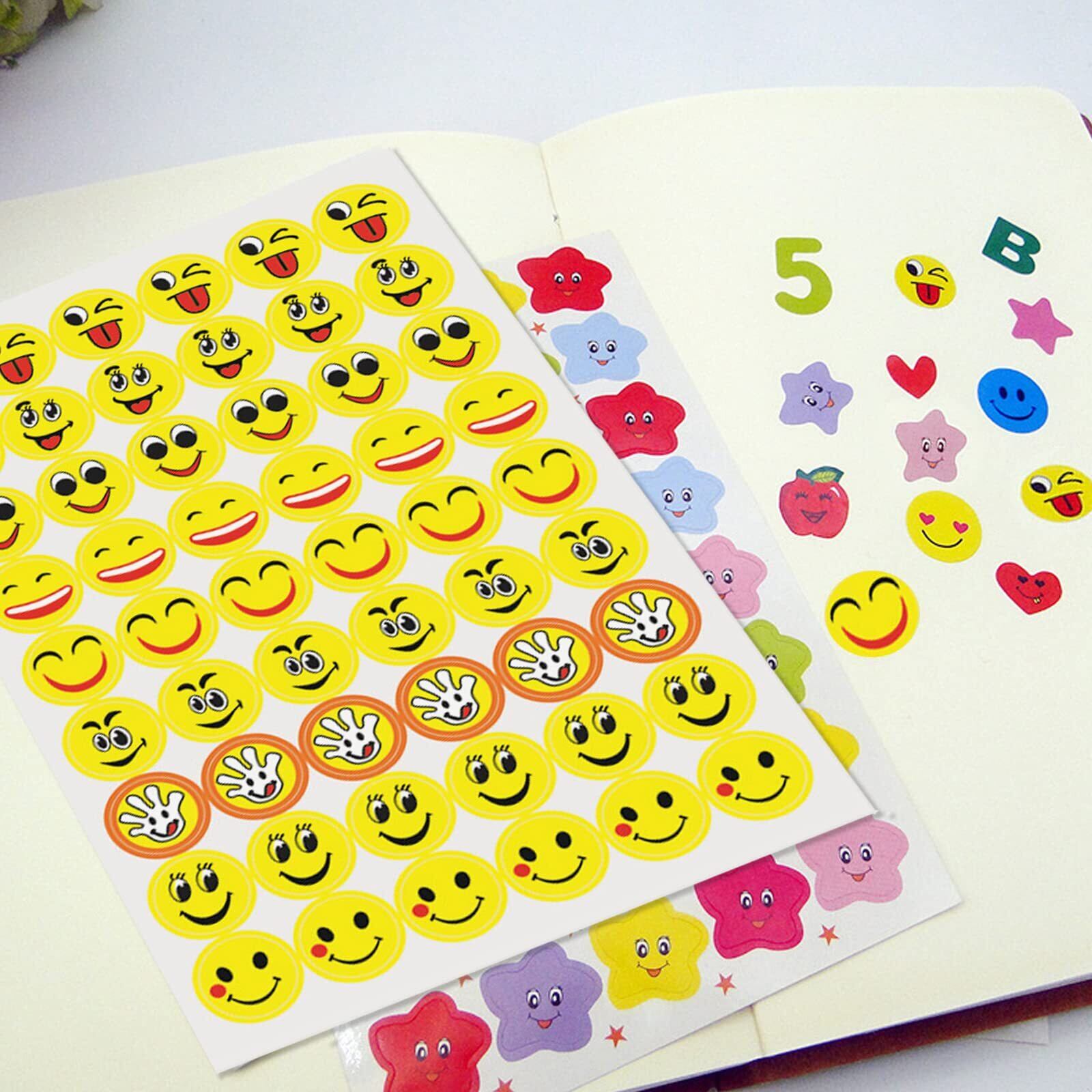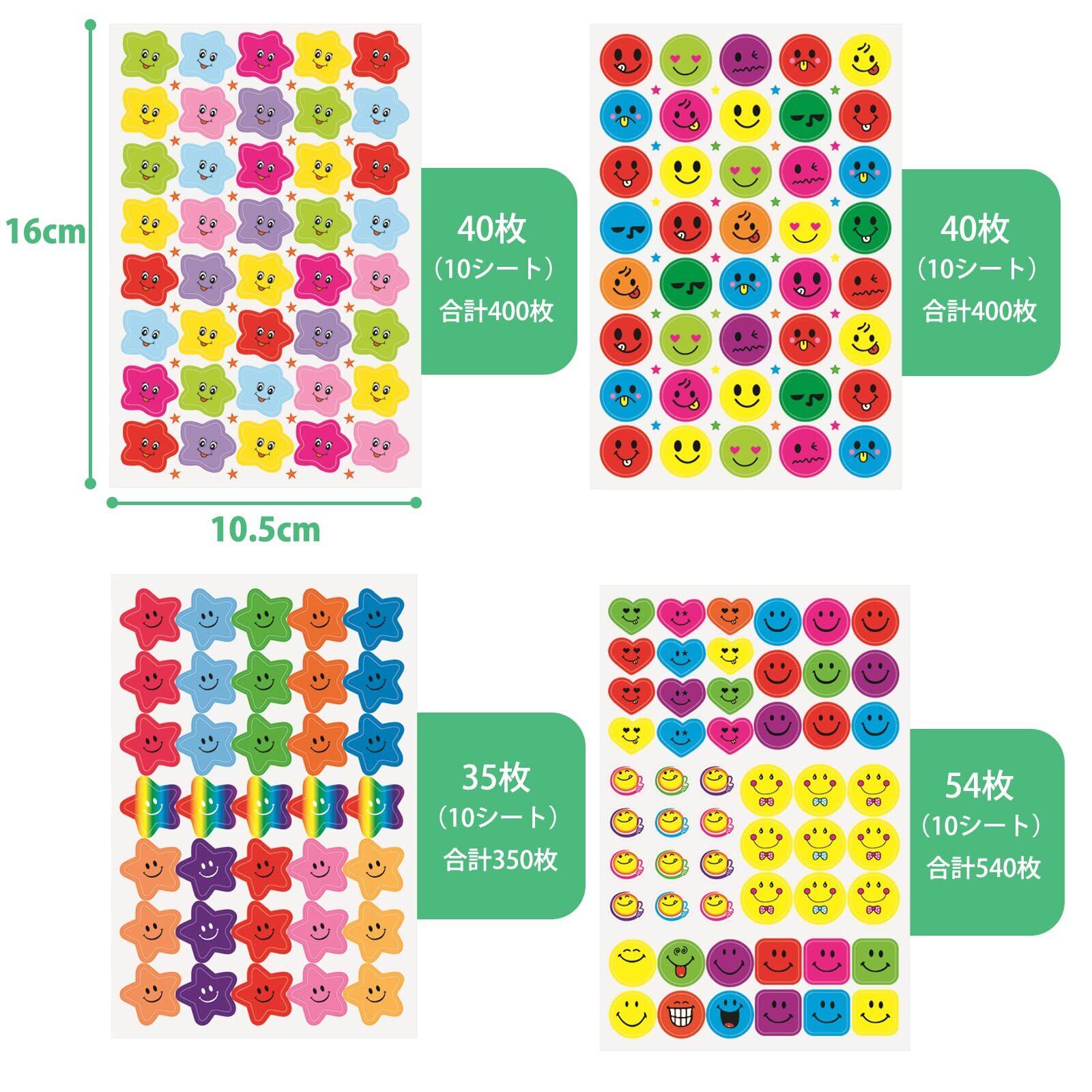 EUSTACE ごほうびシール 大容量 【1690ピース】 ニコニコ表情円形シール 星 学童用 ステッカー かわいい シール カラフル 学童用 教師褒美用品