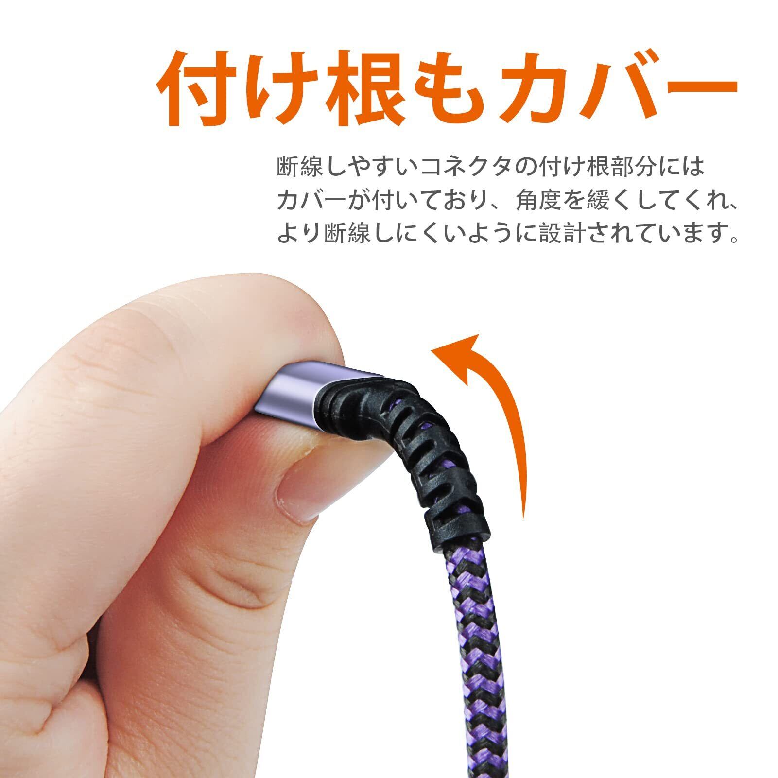 【長持ちで頑丈なケーブル】15,000回以上の曲げ試験と10,000回以上の指抜き試験にに合格しており、耐久性にとても優れております。少々雑な扱いにも耐えられるきっしりしたusbケーブルです。