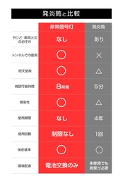 緊急停車時の二次的事故防止に。発炎筒の代わりに車載できる車検対応品。消費期限がなく、電池交換で繰り返し使える。夜間、約200m先からでも確認できる強力発光。連続使用約8時間(新品アルカリ電池を使用した場合)。緊急時でも直感的に操作しやすいスイッチ形状。マグネット付きで車内からでも設置できる。