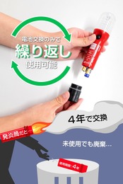 連続使用時間:約8時間(新品アルカリ電池使用時)・使用電池:単4アルカリ電池×2本(別売)・テスト用電池付属