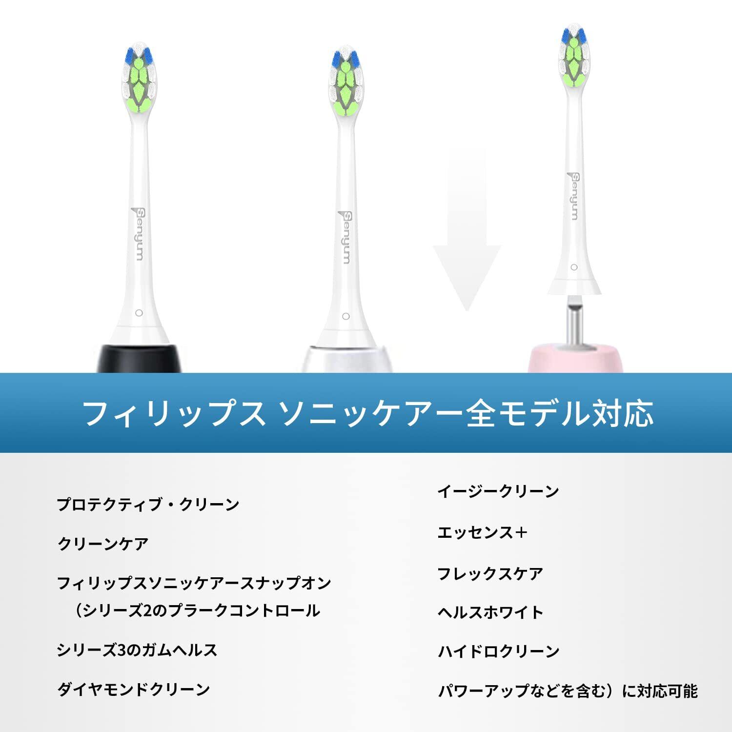 【最新進化モデル】Senyum 電動歯ブラシ 替えブラシ フィリップス ソニッケアー ダイヤモンドクリーン 交換用ブラシ対応可能 取り付け簡単(8本入り) 白い