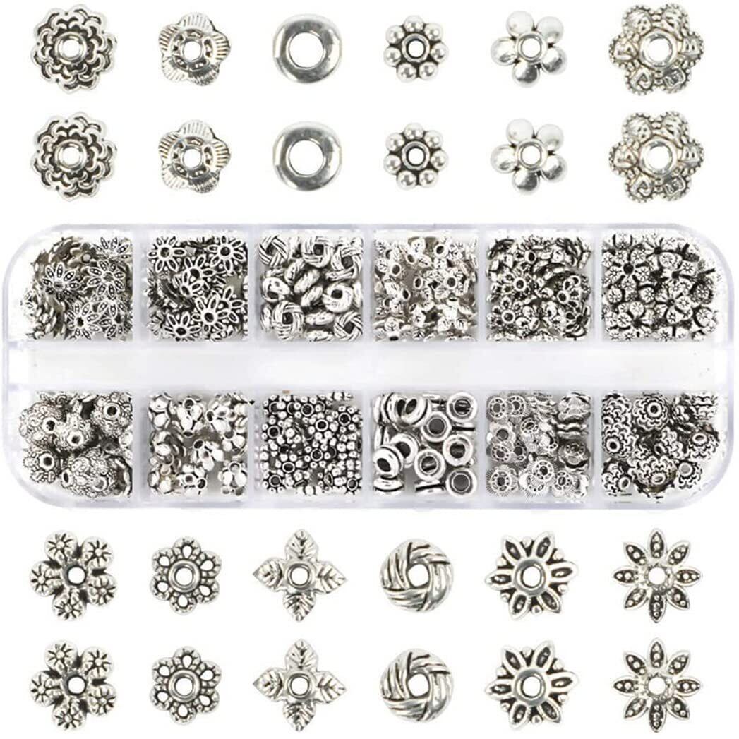 HappyHome ブレスレット スペーサー シルバー パーツ 12種 360個入り アクセサリークラフト 金具 DIY 手芸パーツ