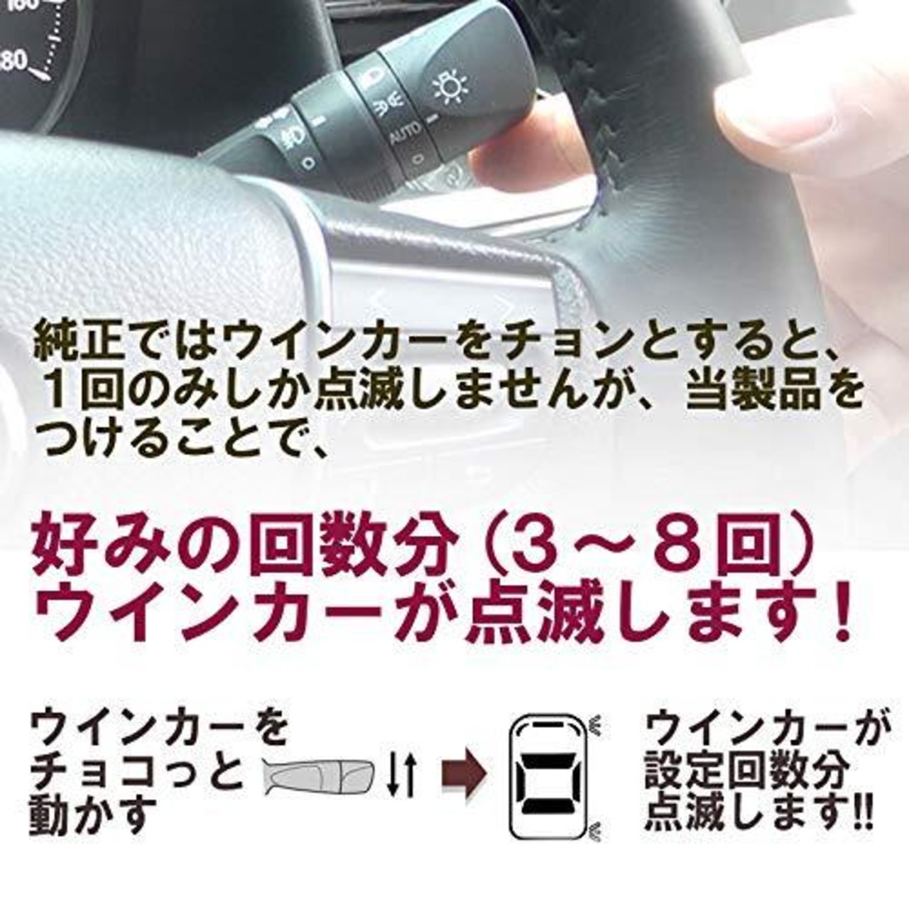 高速道路などの車線変更時のウィンカーレバー操作をサポートし、1回チョコっとウインカーを動かすだけで、設定回数分点灯し消灯! 一度この機能を知ると、ノーマルが不便に感じてしまうほど画期的な機能です。