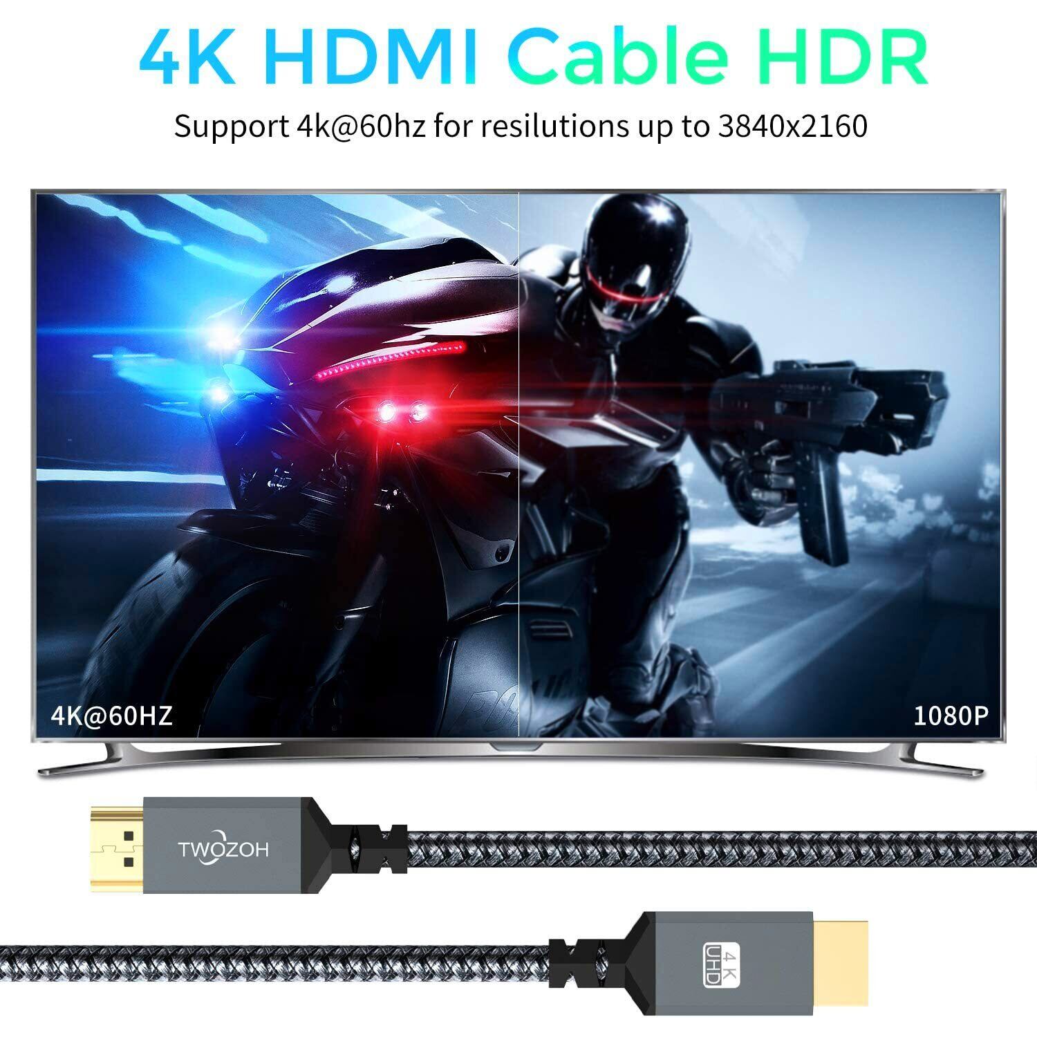【ハイスピード】Twozoh最新規格ハイスピードHDMI 2.0ケーブル、2.0a/2,0b, 4K UHD @60Hz、18 Gbps対応、4K 2160p(UHD)、1440p (QHD)、1080p (HD)ビデオを無制限で高速送信できます。