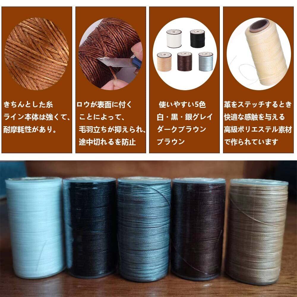 【極細0.45㎜】 ポリエステルろうびき糸、太さ0.45㎜、1㎜と2㎜菱目打ちと相性よく、通しやすく丸紐タイプでステッチも綺麗に。、レザークラフト手縫いに最適だけではなく、マクラメに活躍できます。