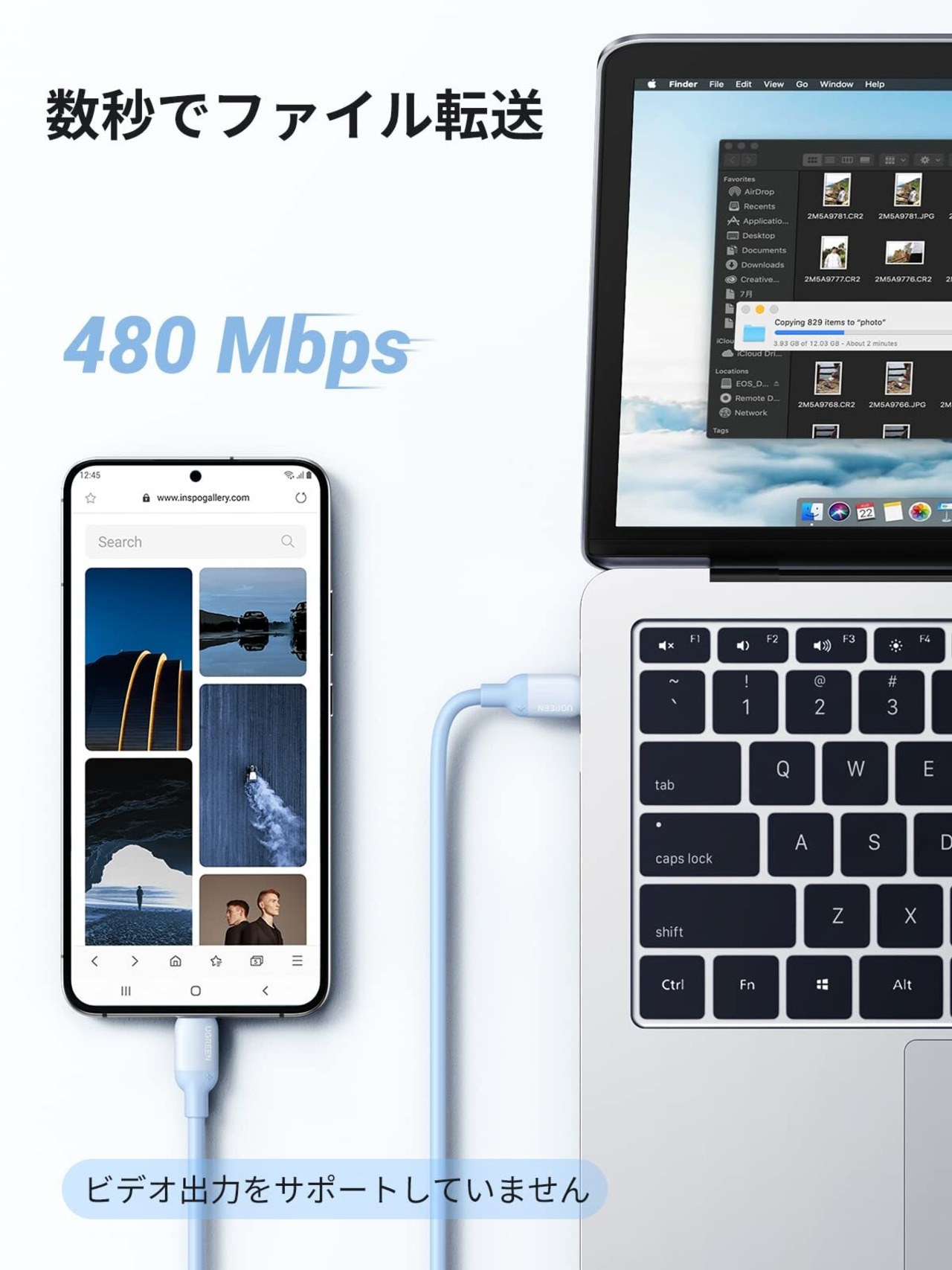 【480Mbps データ転送、映像出力対応できない】Quick Charge 3.0/2.0に対応し、最大480Mbpsのデータ転送速度をサポートし、1GBのファイルを数秒間で転送完了します。【ビデオ出力をサポートしていません。】
