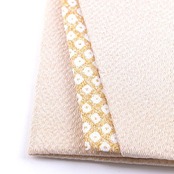 御祝儀はふくさに包むのが礼儀ですが、なかなか上手に包めないもの。金封ふくさがあれば、御祝儀をスマートに差し出すことができます。 【サイズ】約12cm×約20cm 【色】上品なシャンパンゴールドのちりめん生地に華やかさのある格子柄のゴールドを合わせ、ハレの日にふさわしいふくさにしました。 【素材】レーヨン100% Made in Japan 日本製