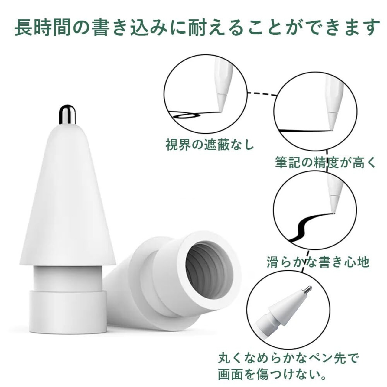 DFsucces 4個入りアップルペンシル 第1世代 第2世代 対応 交換用ペン先 金属製 高耐摩耗性 超高感度 極細0.5mm 視界を遮らず