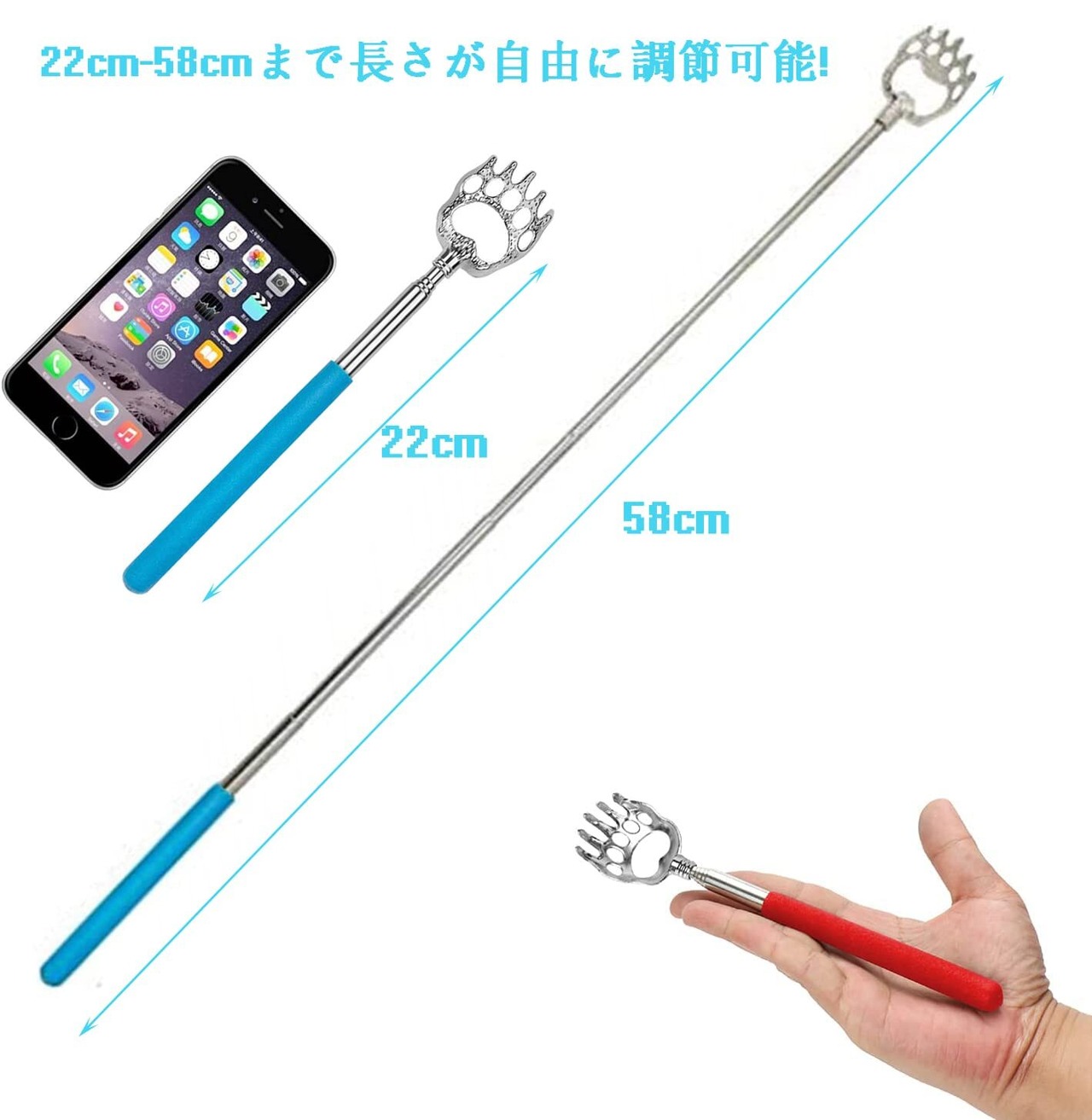 【携帯便利・伸縮可能 】本体:ステンレス、収縮時約22cm、伸長時約68cm、伸縮自由なので、鞄の中に入れて、旅行にも持って行けますから、かゆくなったらいつでも使えます。