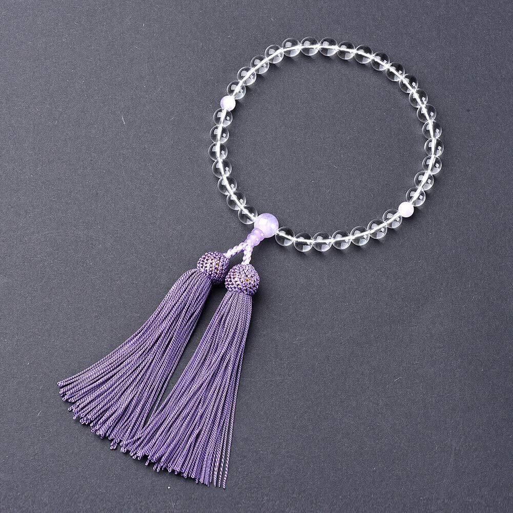 数珠 女性用 本水晶 藤雲石 正絹房マグネット式数珠袋付き じゅず 葬式 法事 法要 じゅず