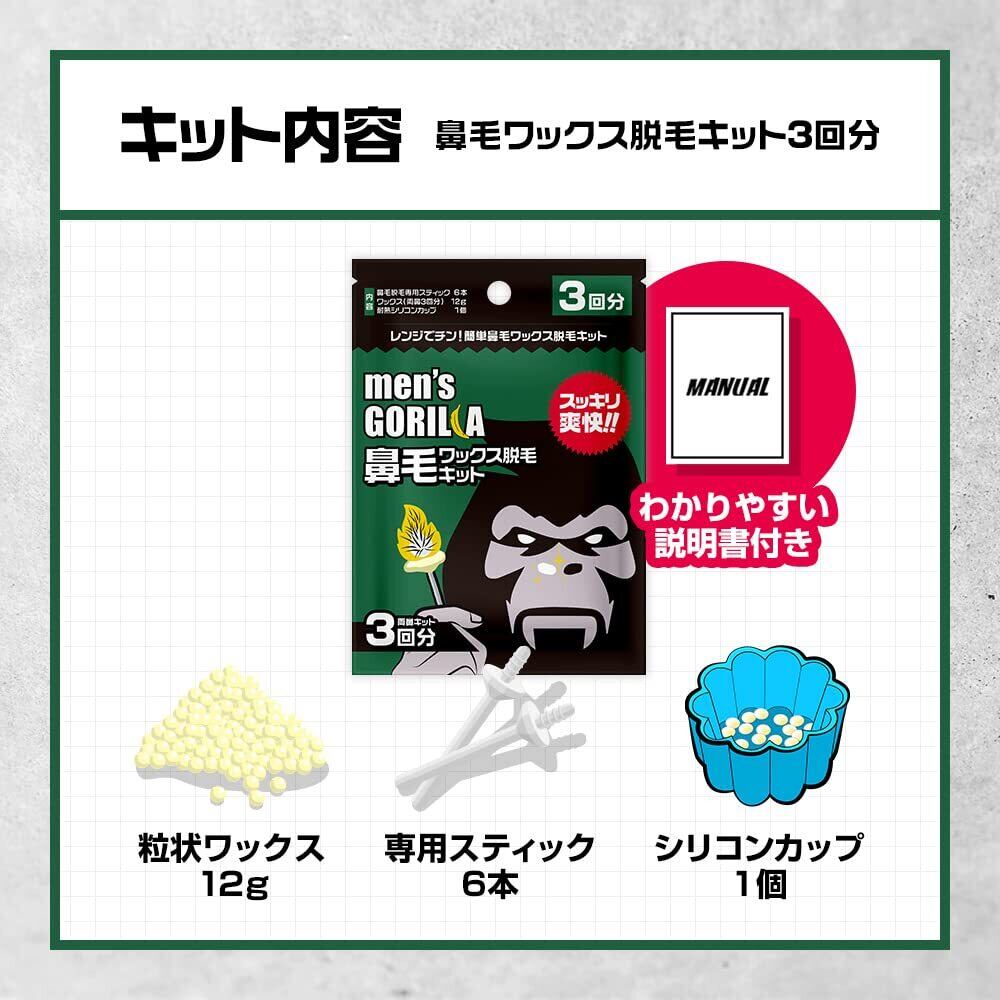 メンズゴリラ 鼻毛ワックス脱毛キット 3回分 ストッパー付 男性 女性 脱毛 鼻毛処理 鼻毛脱毛ワックス レディース ごっそ り鼻毛取り 自宅 セルフ