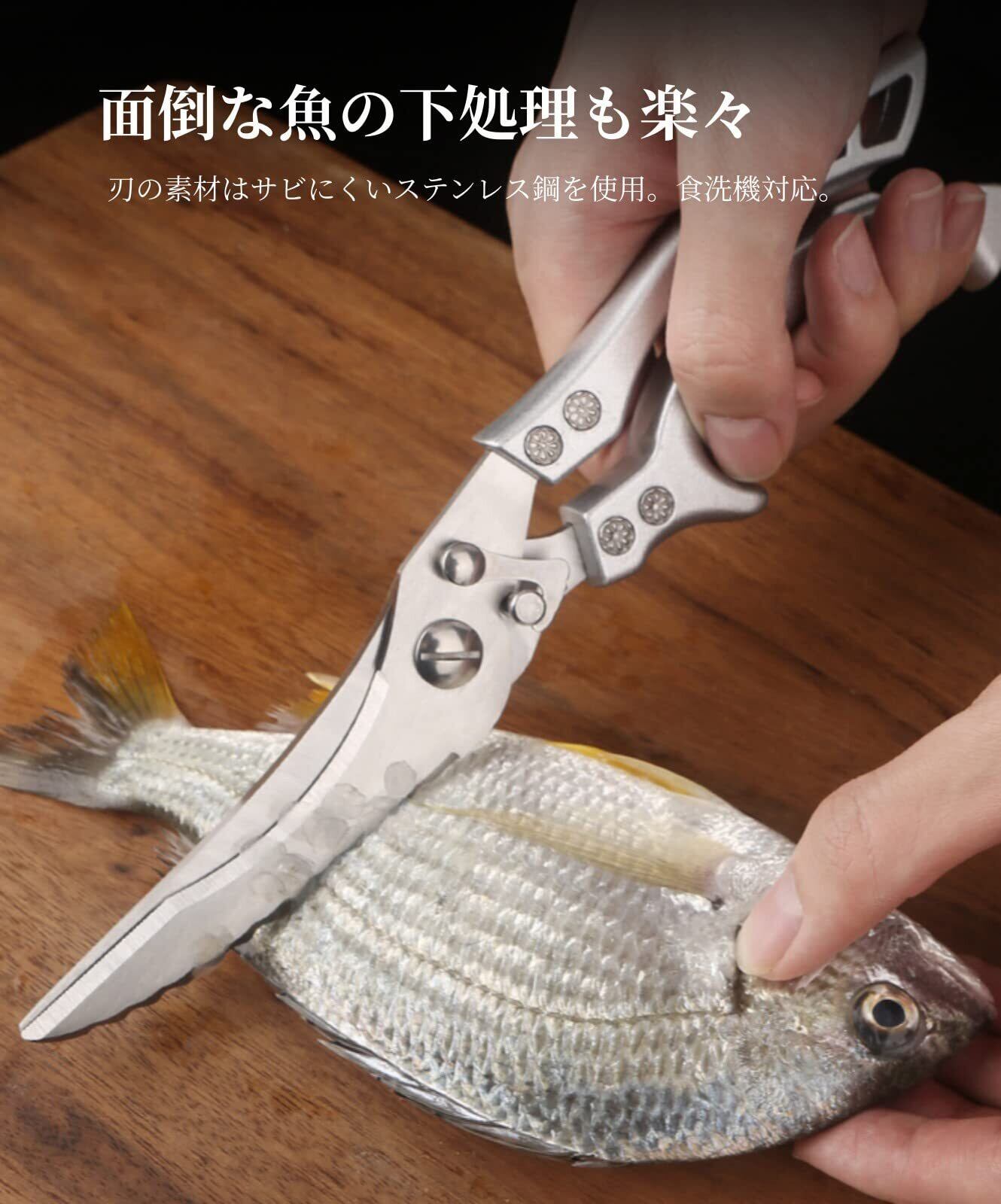 Irai Utaki キッチンはさみ 料理ばさみ 両利き用 多機能 サビに強い ステレンス製 調理用 食洗機対応 一本あると調理が楽々