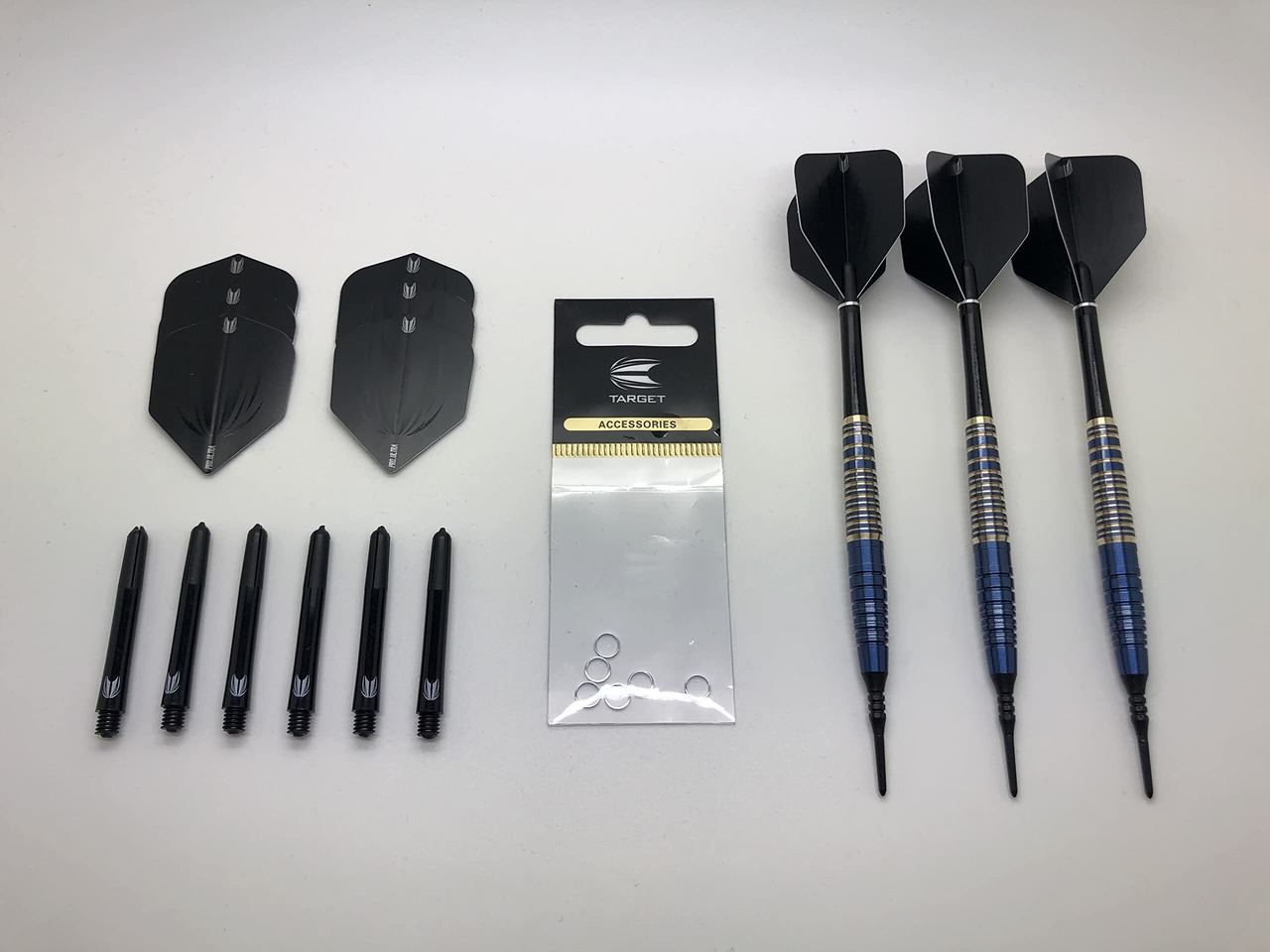 予備用のフライト 2セット(6個)、シャフト 2セット(6個)、シャフトリング 2セット(6個)も付属されているので消耗品にもすぐに交換が可能な充実のセット内容