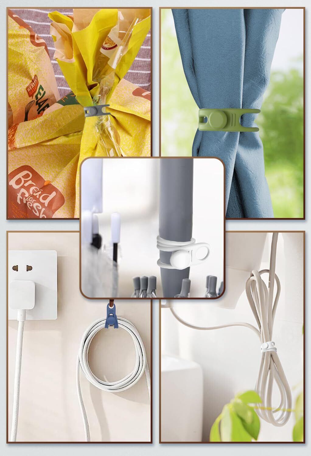 【幅広い用途】イヤホンケーブル、テレビケーブル、コンピュータケーブル、USBケーブルなどのオフィス用品をまとめるだけでなく、食べかけのパン袋やカーテンなど、日常生活の様々なものを束ねるのにも便利です。また、湿った靴下やタオルを干す際にも利用できます。さらに、サーフィンなどのアウトドア活動では、靴や傘などの目印としても使えます。アイデア次第で無限の用途が可能な万能なケーブルバンドです。