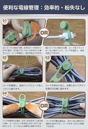 【紛失防止・フック機能兼用】従来品と異なり、このケーブルバンドは独特なデザインにより、従来品と同様に紛失防止とフック機能を自由に選択できるだけでなく、ケーブルなどをフラットホールでしっかり固定できて紛失防止の同時に、先端の穴で好きな場所に吊ることもできます。2 in 1で非常に便利です。そのため、コードをよりすっきり収納するだけでなく、この多機能バンドの用途がさらに広がります。