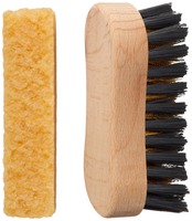 ブラシは真鍮入りで、スエードのホコリを落とし、毛足を整えます。