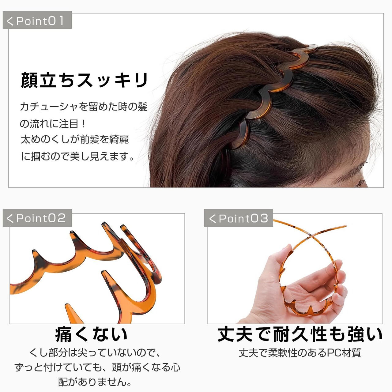 【快適なデザイン】カチューシャは長い歯の形をしていて、小さな折れた髪が集まりやすいので、頭の上で滑るのは簡単ではありません。毎日の使用は、サイズに関係なく、ほとんどの人の頭に適しています。
