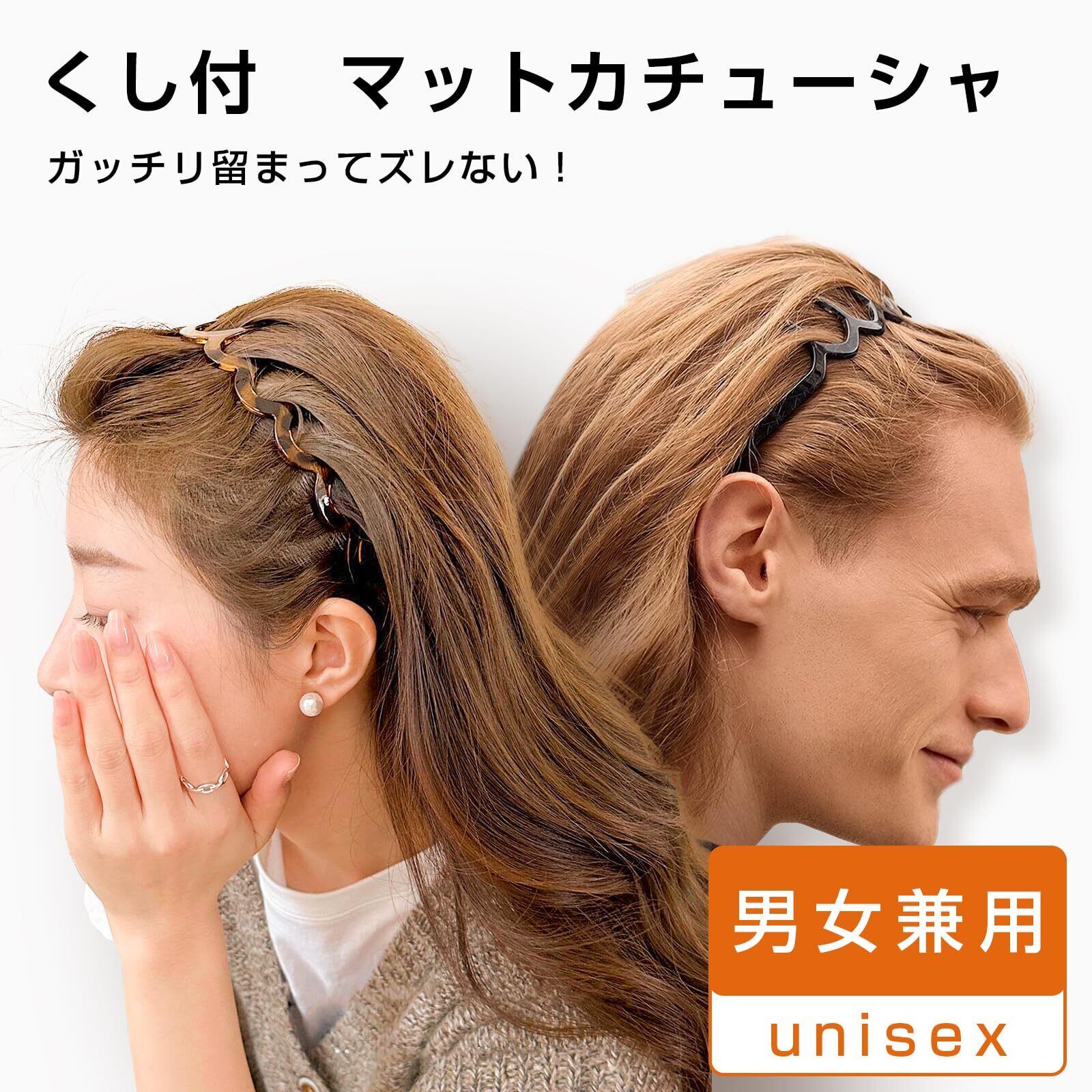 KISARG カチューシャ くし付ヘッドバンド ヘアバンド ヘアアクセサリー レディース メンズ兼用 コーム付き 前髪 ヘアアレンジ 2セット ブラック とべっ甲