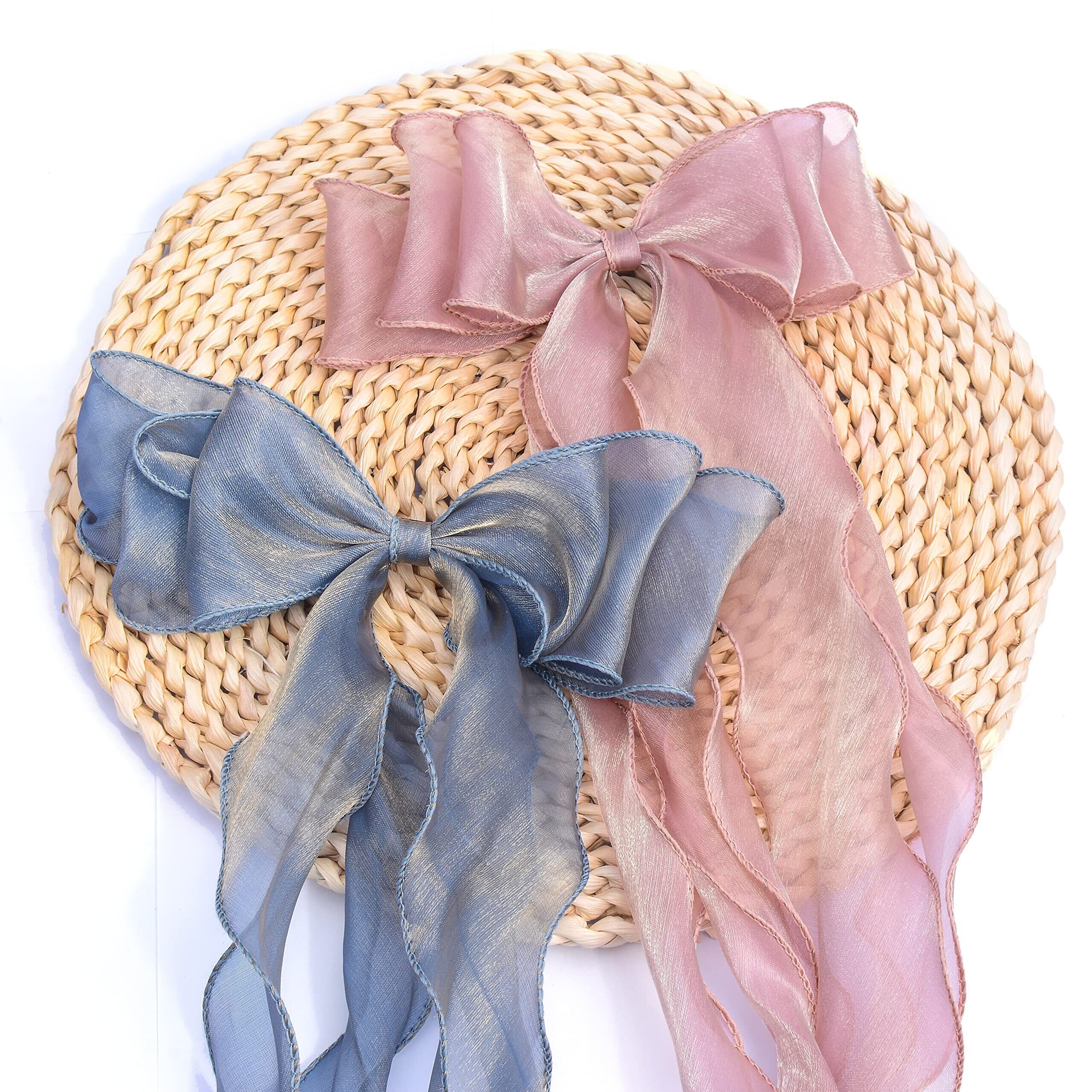 BIANHUAN ベビー ヘアクリップ キッズ 赤ちゃん ヘアピン リボン ロング シフォン ヘアアクセサリー こども 子供 女の子 髪飾り 髪留め おしゃれ 簡単 可愛い 2点セット 発表会 結婚式 フォーマル お誕生会 プレゼント